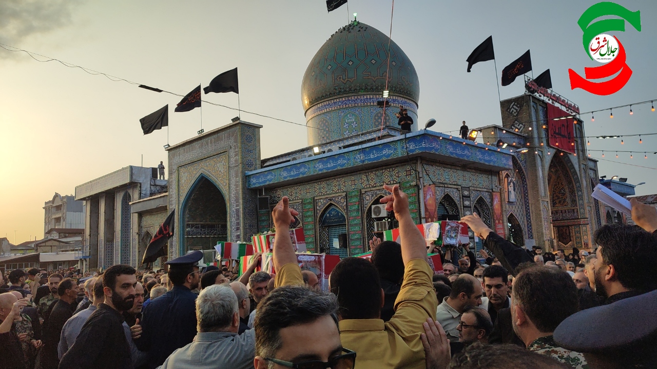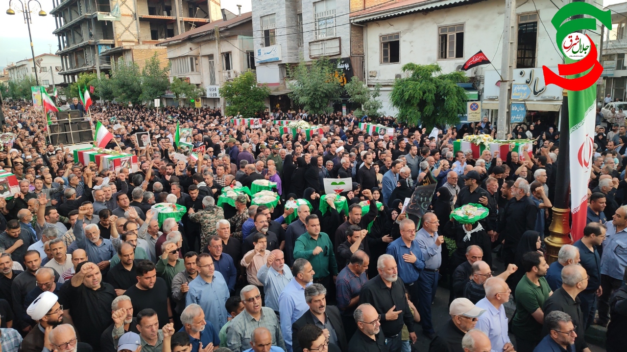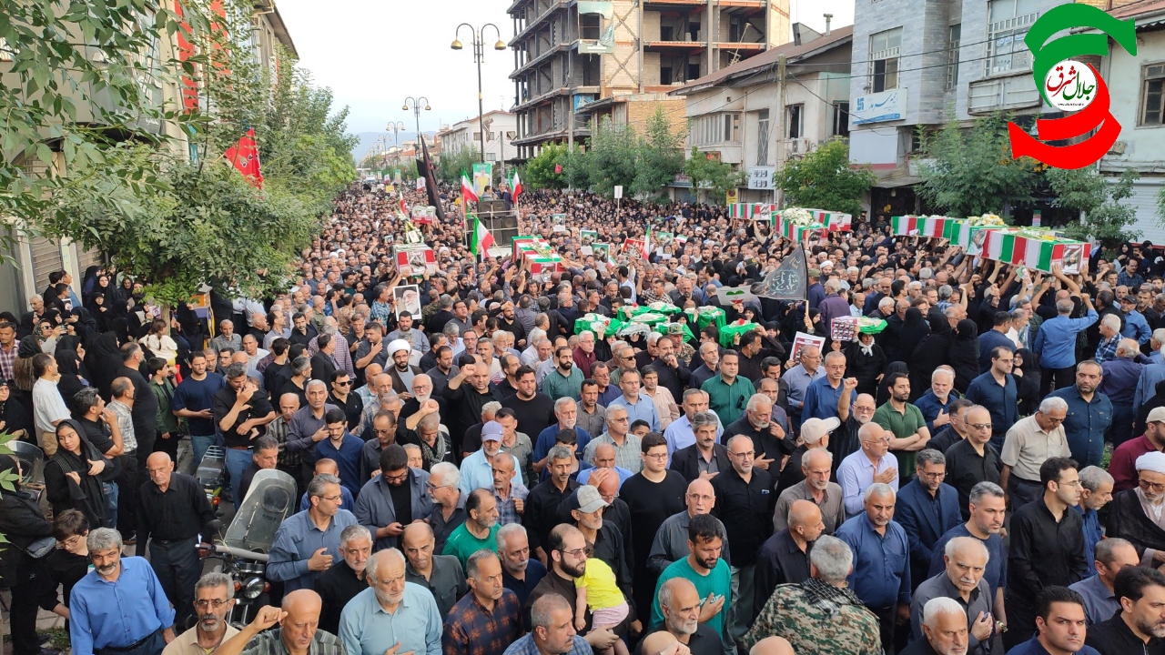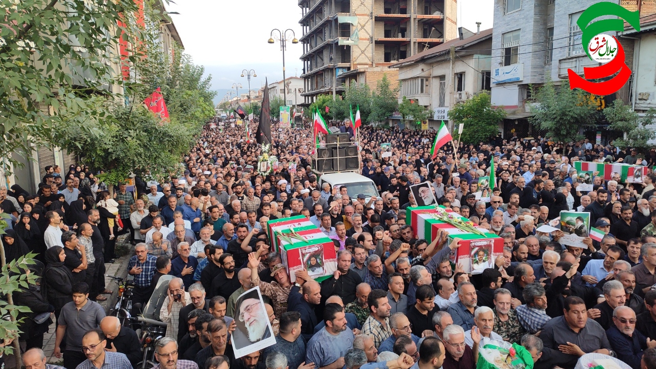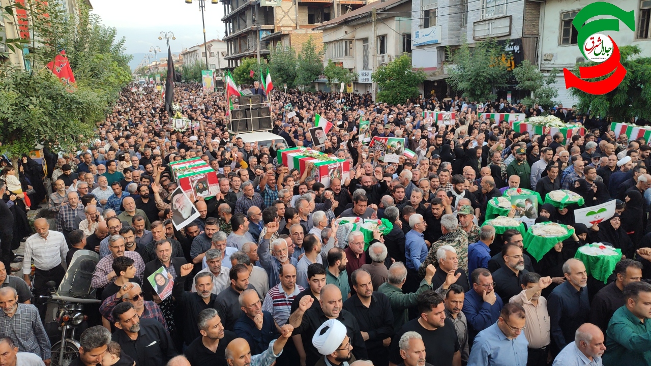 به گزارش جلال شرق، در آئین تشییع پیکر پاک شهدا که با حضور بی سابقه و پرشور مردم شهرستان و شهرهای هم جوار و خانواده شهدا برگزار شد یکی از بی نظیرترین تشییع های تاریخ شهرستان آستانه اشرفیه ثبت و ضبط شد و در حالی که پیکر پاک شهدا بر روی شانه های مردم شهر حمل می شد شعار مرگ بر امریکا و مرگ بر اسرائیل فضای شهر را در می نوردید.