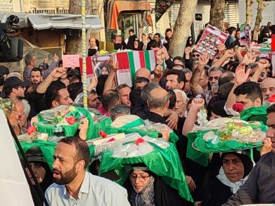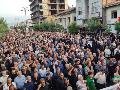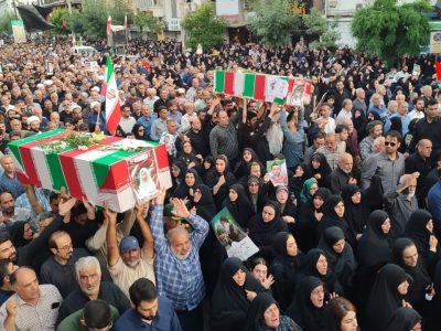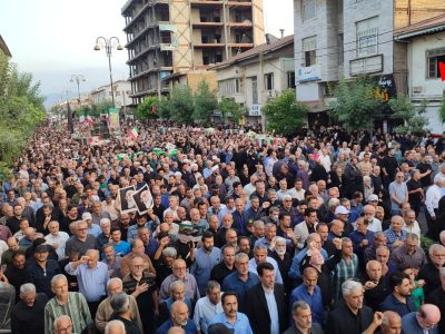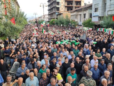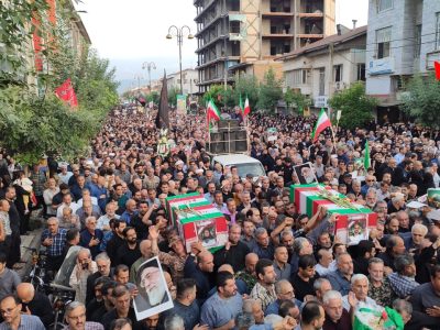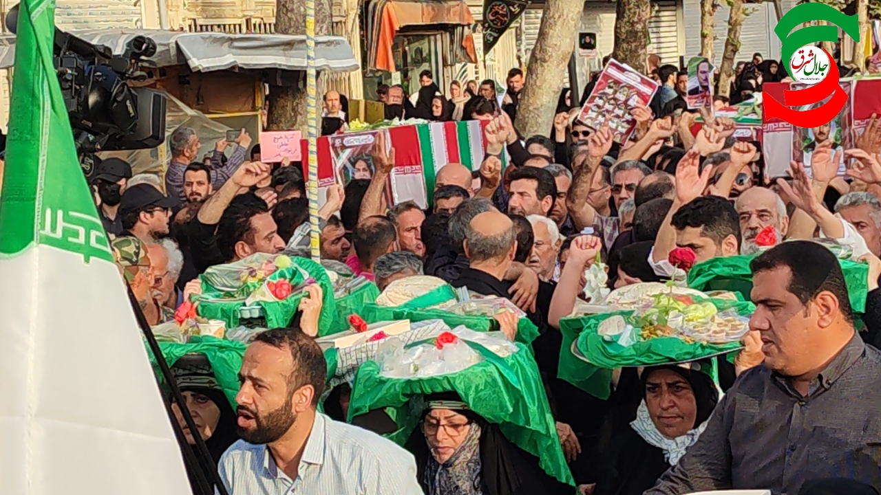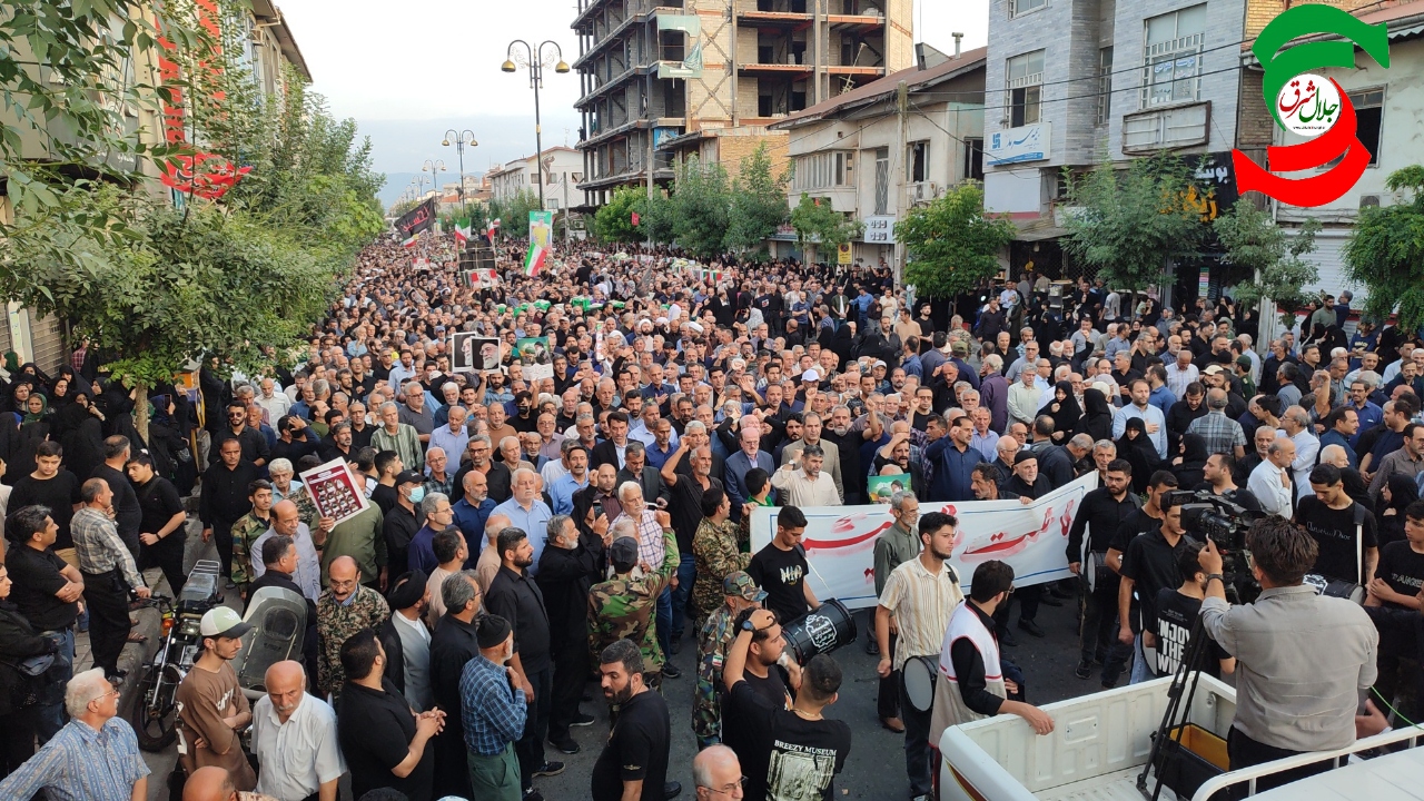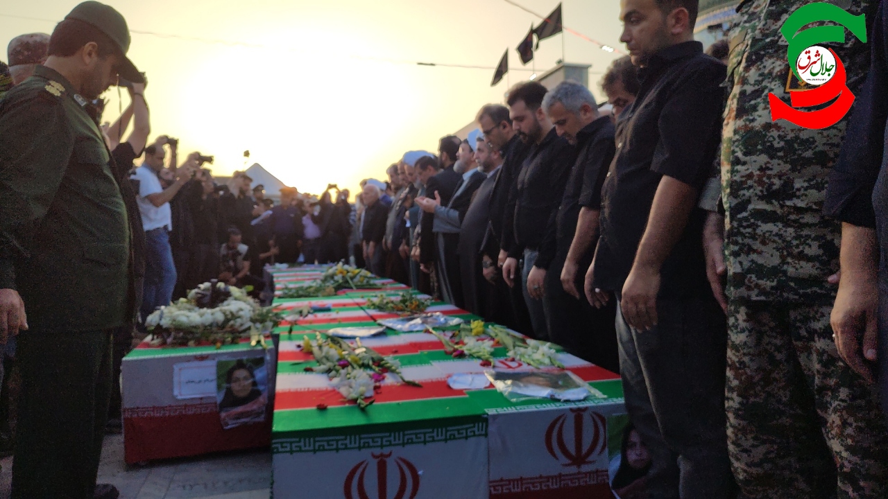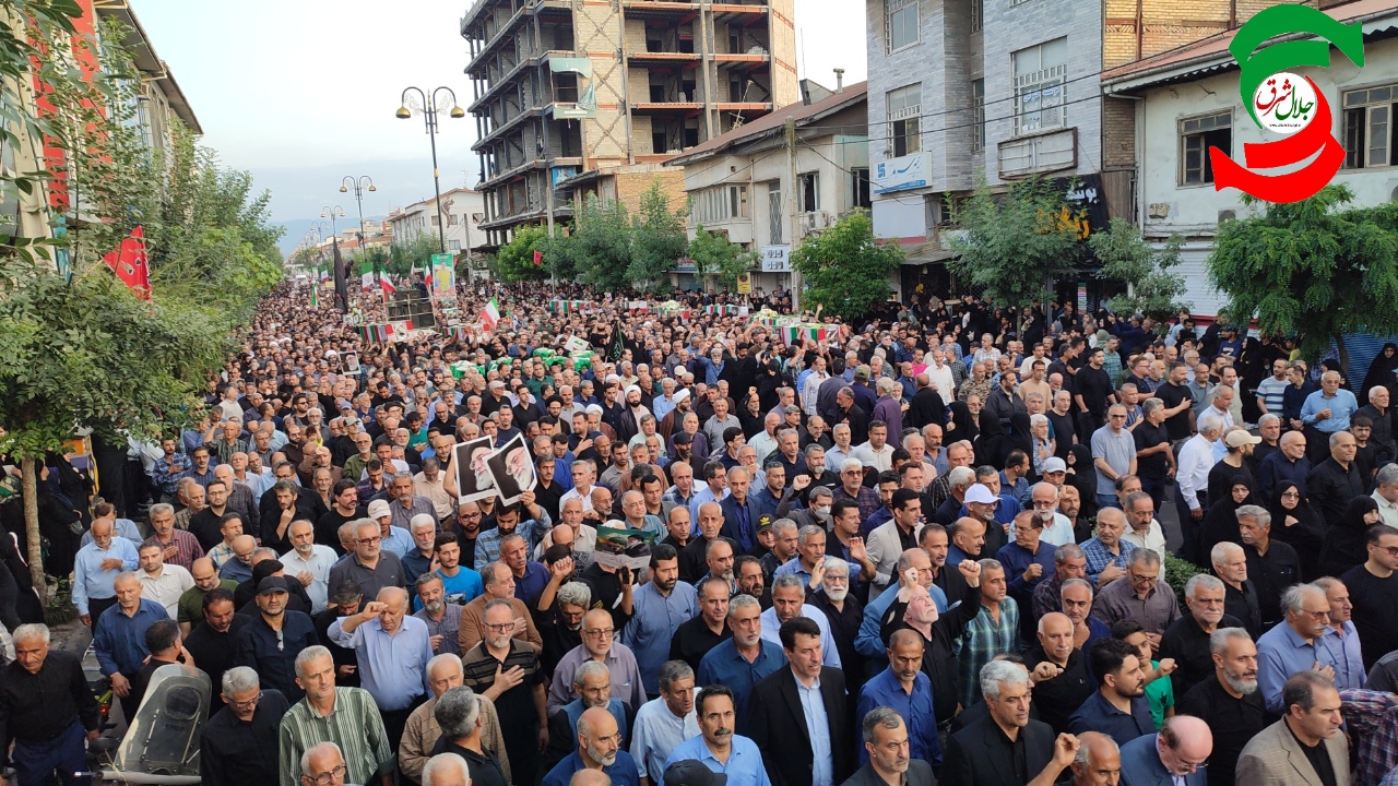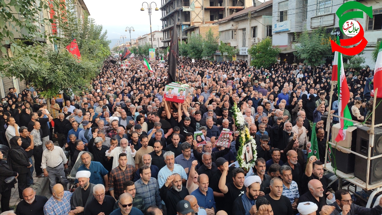به گزارش جلال شرق، در آئین تشییع پیکر پاک شهدا که با حضور بی سابقه و پرشور مردم شهرستان و شهرهای هم جوار و خانواده شهدا برگزار شد یکی از بی نظیرترین تشییع های تاریخ شهرستان آستانه اشرفیه ثبت و ضبط شد و در حالی که پیکر پاک شهدا بر روی شانه های مردم شهر حمل می شد شعار مرگ بر امریکا و مرگ بر اسرائیل فضای شهر را در می نوردید.