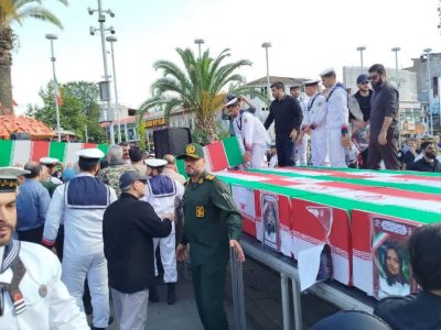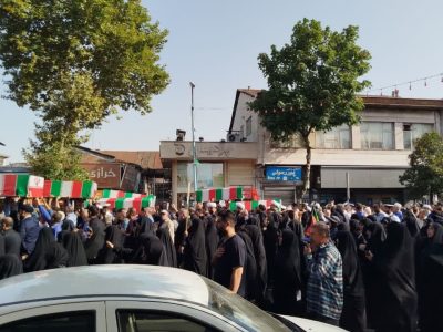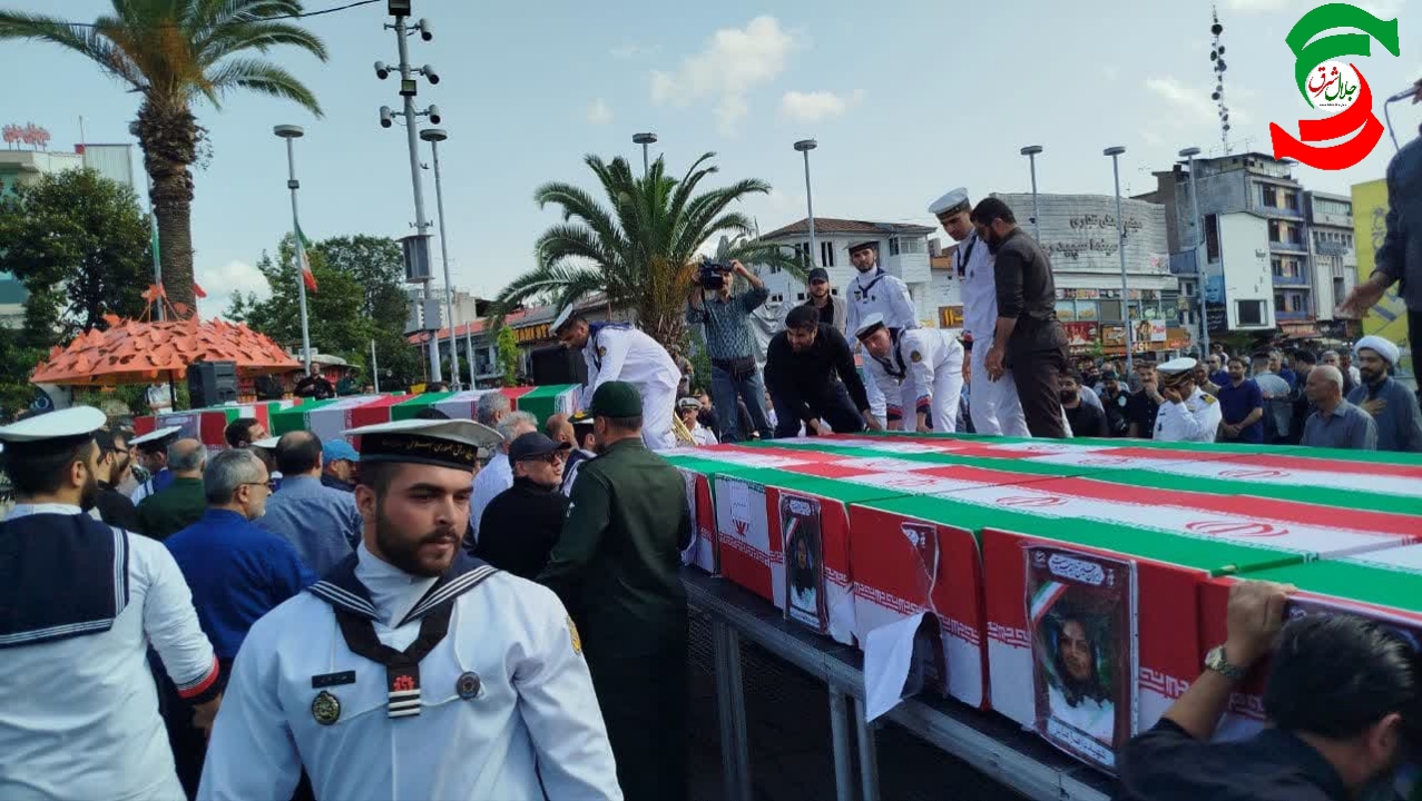 پیکر پاک ۱۱ تن از ۱۶ تن شهدای حمله تروریستی اسرائیل به شهر آستانه اشرفیه عصر امروز از میدان شهدای ذهاب رشت تا میدان صیقلان تشییع و سپس پیکر پاک شهدا به استانه اشرفیه بریا خاک سپاری انتقال داده شد.