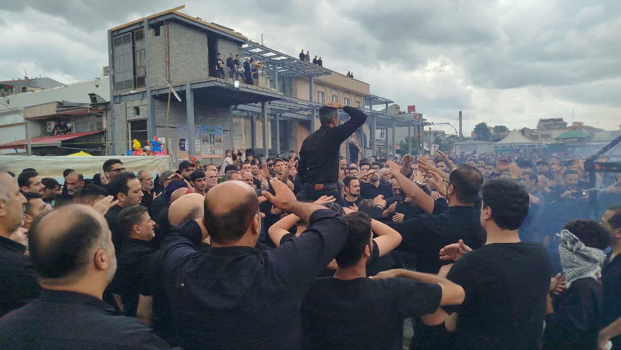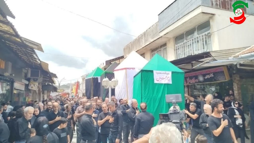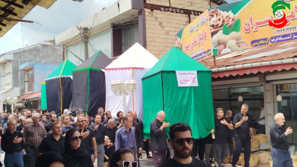 به گزارش جلال شرق، ائین نمایشی آتش زدن خیام که توسط جوانان شهر آستانه اشرفیه به اجرا در می آید هرساله بعد از خیمه گردانی در ماه ششم و قرار دادن یک خیام در رواق جلویی حرم مطهر ، ۵ خیام به نماد خیام اهل بیت در صحرای کربلا پس از ساختن از محل خیمه گاه به مصافت حدود ۵۰۰ متر به صحن حرم طی به حرکت در آوردن دسته عزاداری آورده می شود ، به همراه حرکت خیام از خیمه گاه ، تعدادی از اشقیا و یتیمان اهل بیت در حالی که لباس ویژه مخصوص را بر تن دارند به حرم مطهر ورود می کنند.