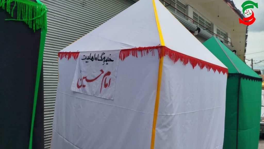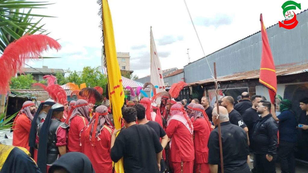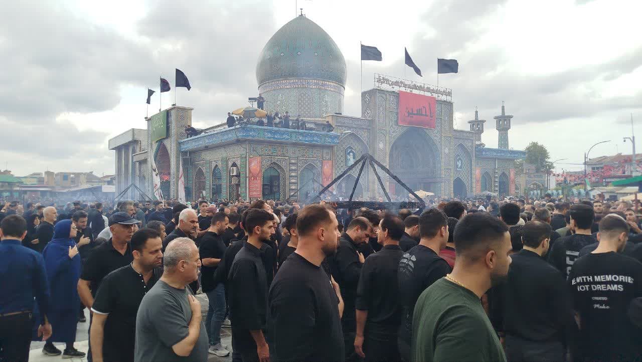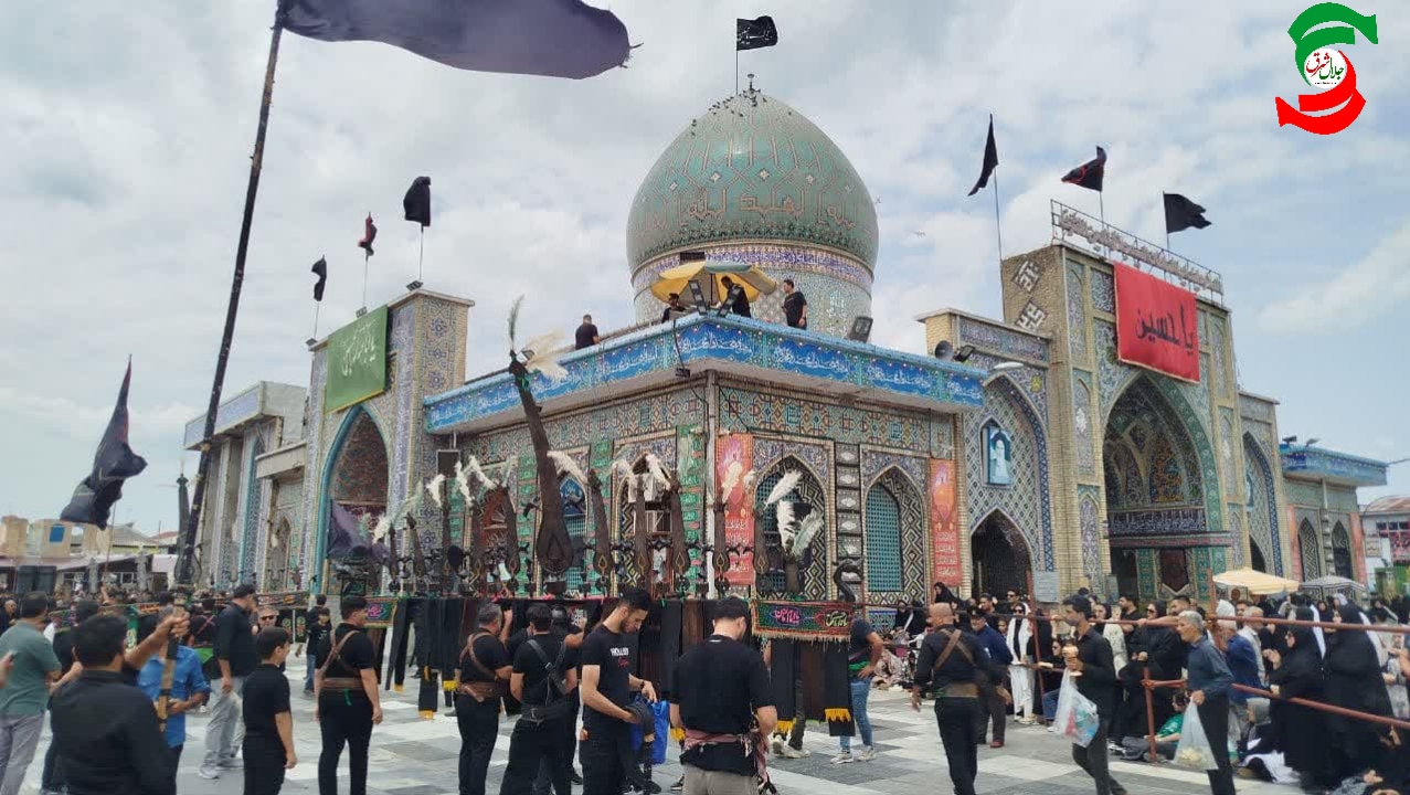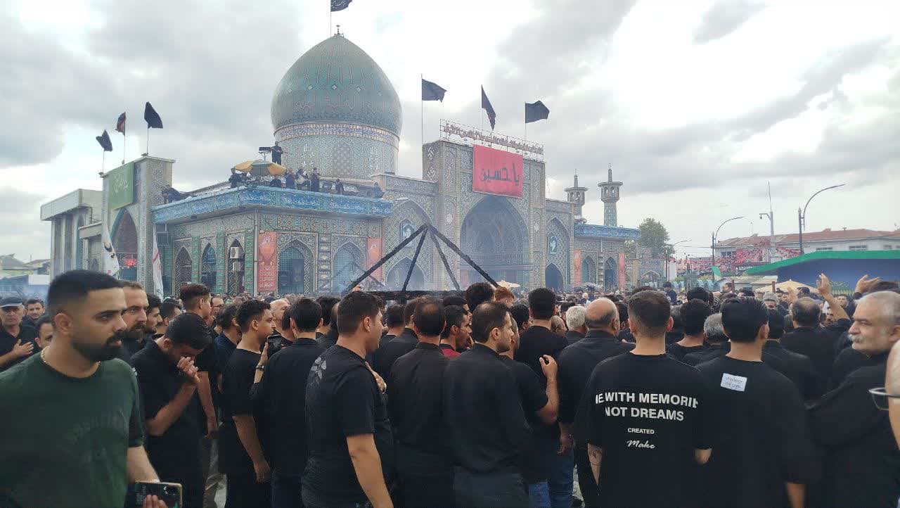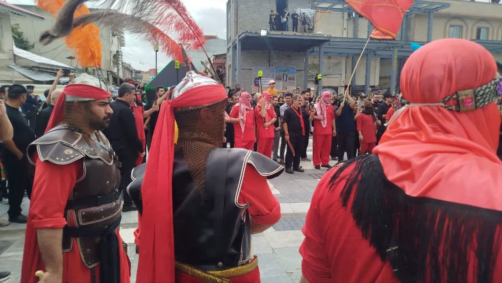 در صحن حرم پس از قرار گرفتن خیمه اهل بیت و خیمه امام حسین در ابتدای صحن ، اطفال اهل بیت در خیام قرار می گیرند و پس از اجرای یک گوشه از آئین نمایشی تعزیه که بنا به روایت هرساله از وقایع کربلا به تصویر کشیده می شود ، تعدادی از یتیمان اهل بیت به شهادت و با دستور عمر سعد و شمر خیام به اتش کشیده می شود و این در حالی است که در طی مراسم صدای دهل و شیپور جنگی نواخته می شود و پس از سوختن خیام گروه عزادار با سینه زدن و دست به سر کوبیدن ندای وای حسین کشته شد دو دور حرم مطهر را طواف می کنند و بدین صورت این آئین نمایشی به اتمام می رسد.