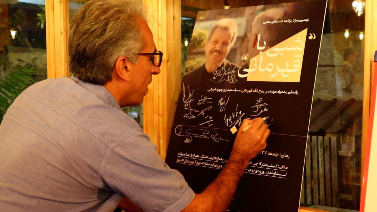شعر خوانی شاهین رهنما از شاعران نام آشنای کشور و گیلان هم زینت بخش نهمین شب های معین در پاسداشت مهندس روح الله قهرمانی سیاستمدار و استاندار فقید گیلان در کنار امضای پوستر یادمان او بود.