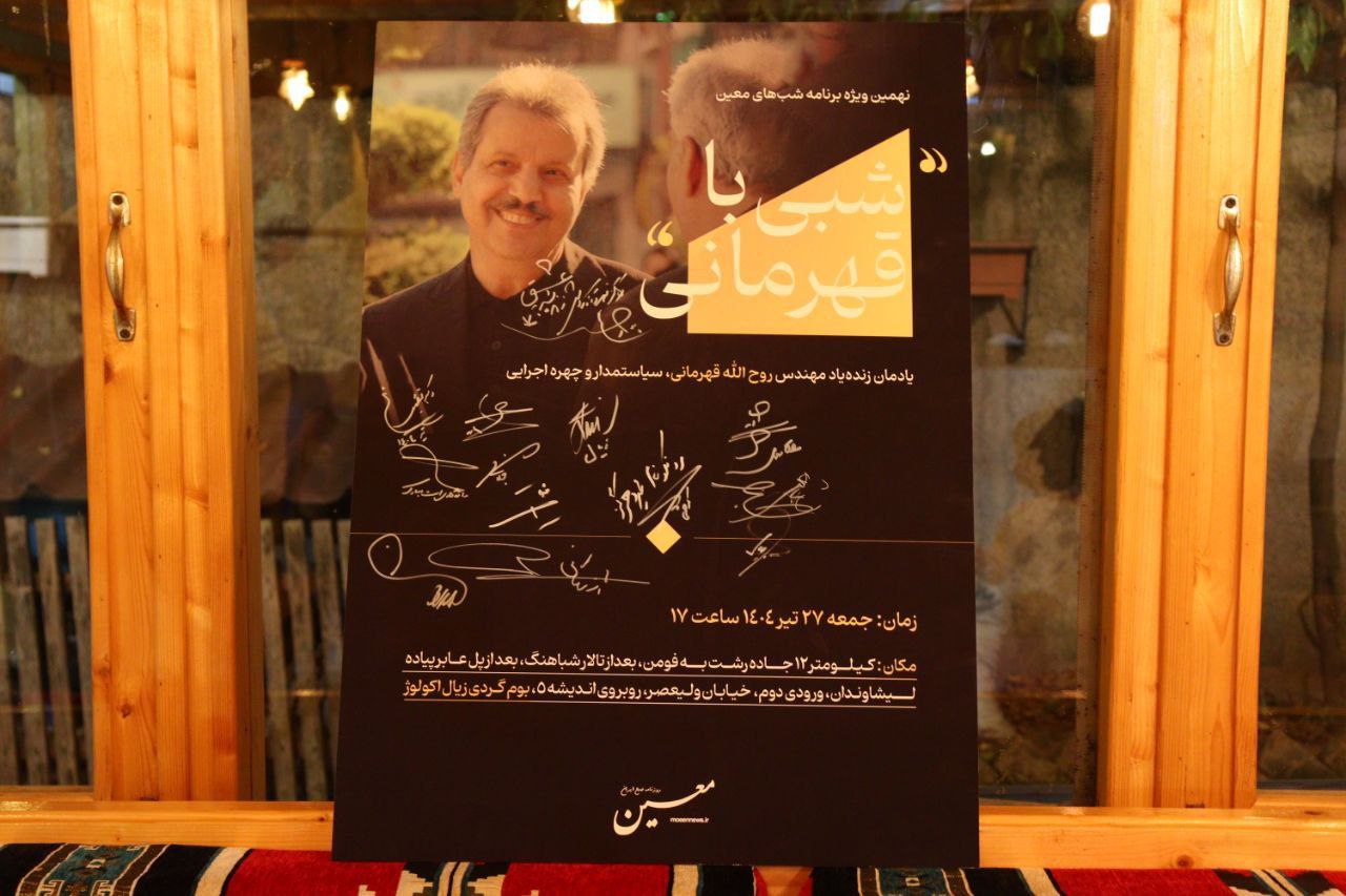 نهمین ویزه برنامه شب های معین دپار تمان رویداد سازی روزنامه معین یاد مان زنده یاد مهندس روح الله قهرمانی سیاستمدار و چهره اجرایی در مجموعه بوم گردی زیال اکوِوز با حضور جمعی از چهره های فرهنگی برگزار شد.