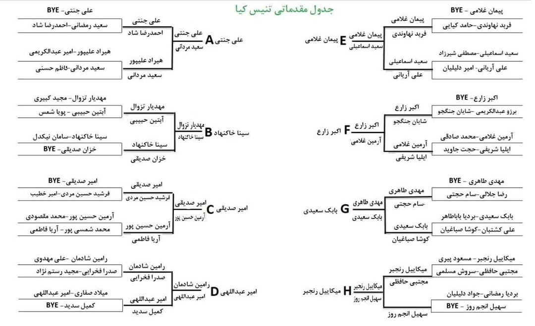 به گزارش جلال شرق، این دوره از مسابقات که با حضور ۶۴ تنیس باز از استان های تهران ، گیلان ، مازندران و استان البرز حضور داشتند پس از انجام مسابقات مقدماتی در ۸ گروه تیمی که در نهایت آقایان محمد خوش خلق ، محمد نیازمند ، سینا مقیمی و رهام عباسی به مرحله نیمه نهایی رسیدند که سینا مقیمی بر رهام عباسی و محمد خوش خلق بر محمد نیازمند غلبه کردند و به فینال رسیدند .