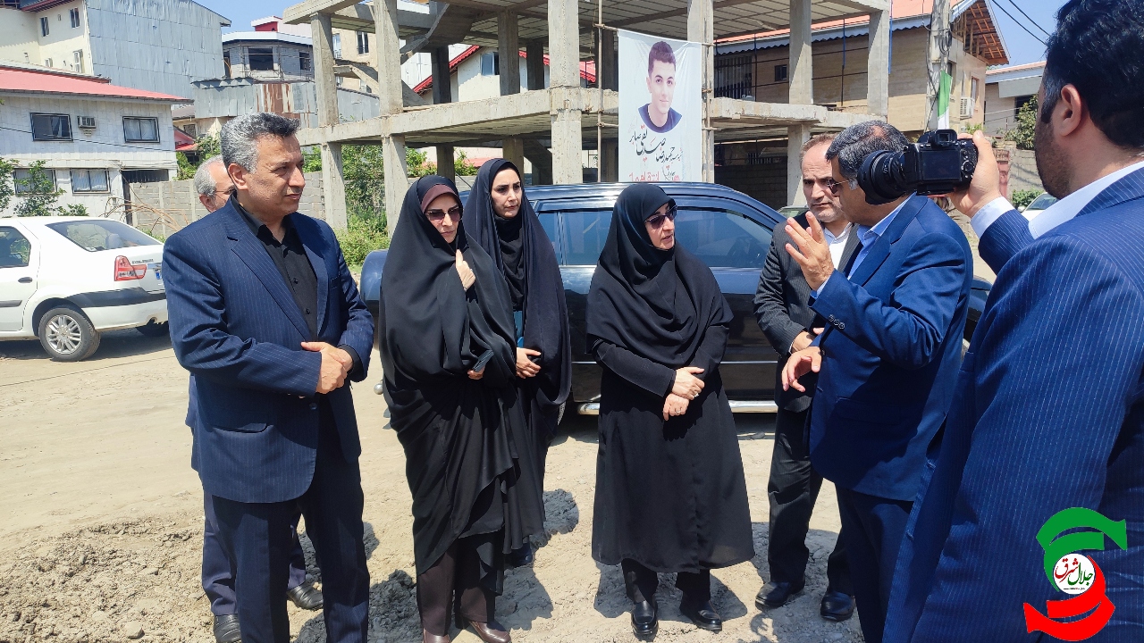 سرکار خانم رضوان حکیم زاده آن گاه در محل بمباران منزل مسکونی دانشمند هسته ای صدیقی صابر که منجر به شهادت ۱۲ نفر از اعضای خانواده ی وی و ۵ نفر دیگر از ساکنان منزل مسکونی اطراف شد حضور یافت و نسبت به همه آنان ادای احترام کرد.