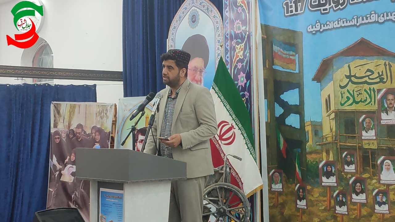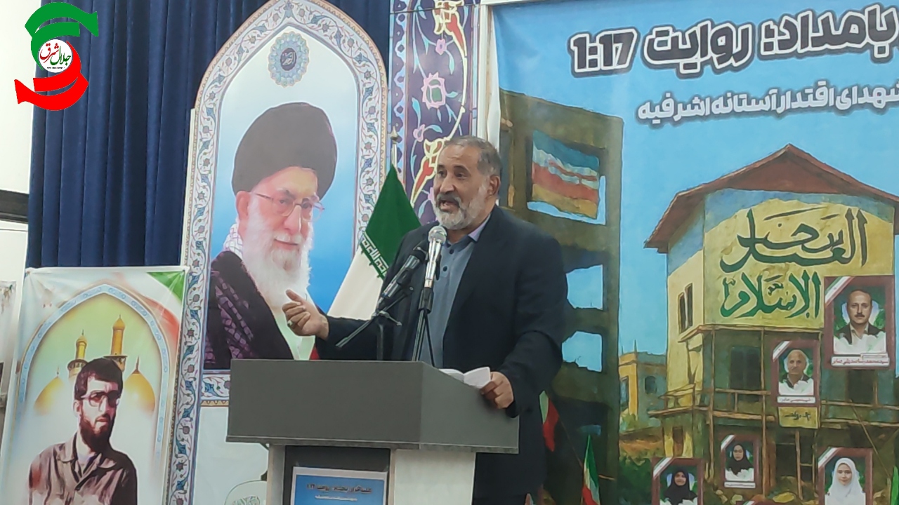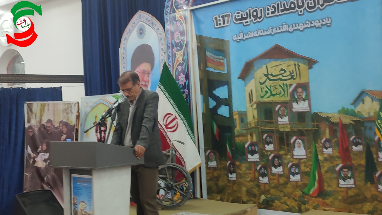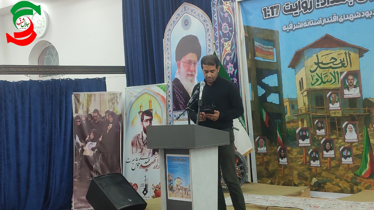 به گزارش جلال شرق، در این آئین ابتدا فرماندار آستانه اشرفیه ضمن خوشامد گویی به شاعران حاضر و تسلیت عزیزان به شهادت رسیده بویژه خانواده دانشمند هسته ای صدیقی صابر گفت: شعر یک موهبت الهی است که خداوند در نهاد شما شاعران گذاشته است.