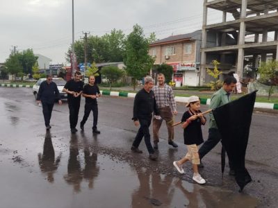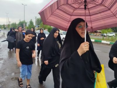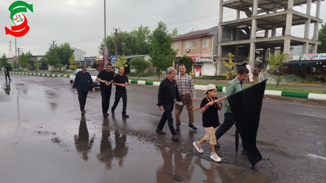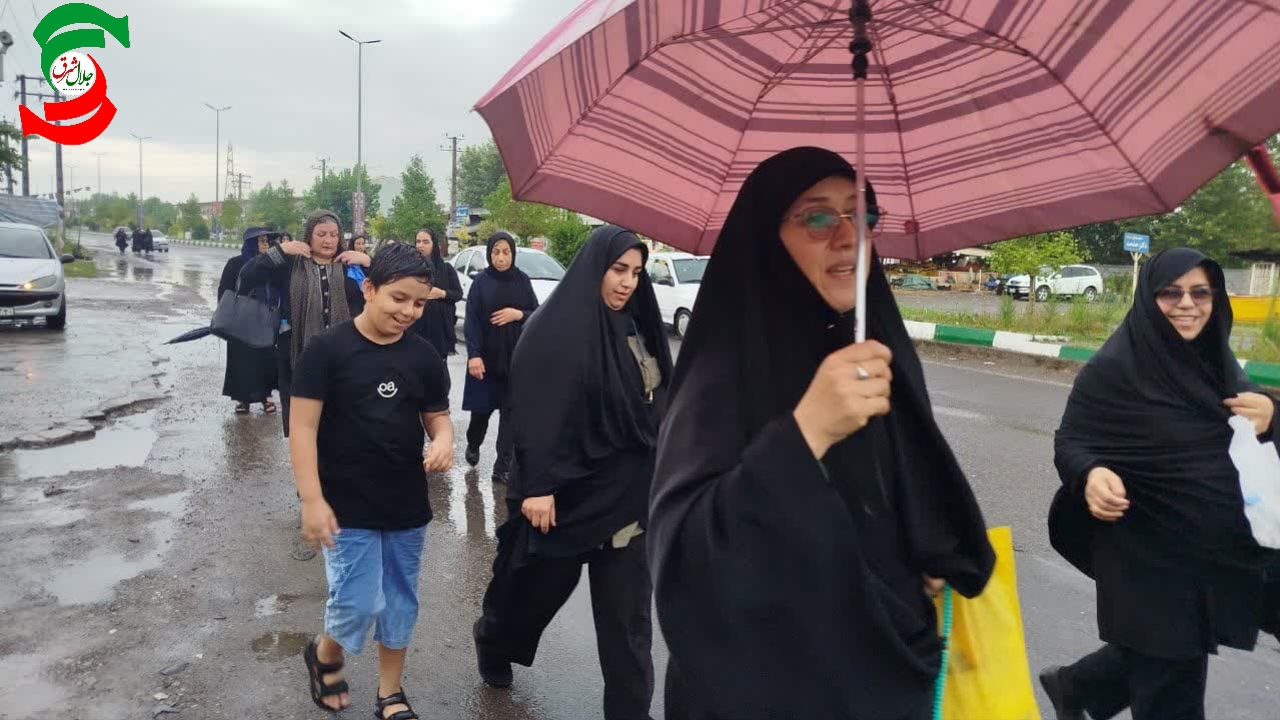 بارش باران رحمت الهی، نهتنها مانع حرکت نشد، بلکه بر شور و حال معنوی کاروان افزود. هر قطره باران، گویی اشک شوقی بود از دلهایی که با هر قدم، نام حسین (ع) را زمزمه میکردند و با هر لبیک، فریاد ایستادگی سر میدادند.