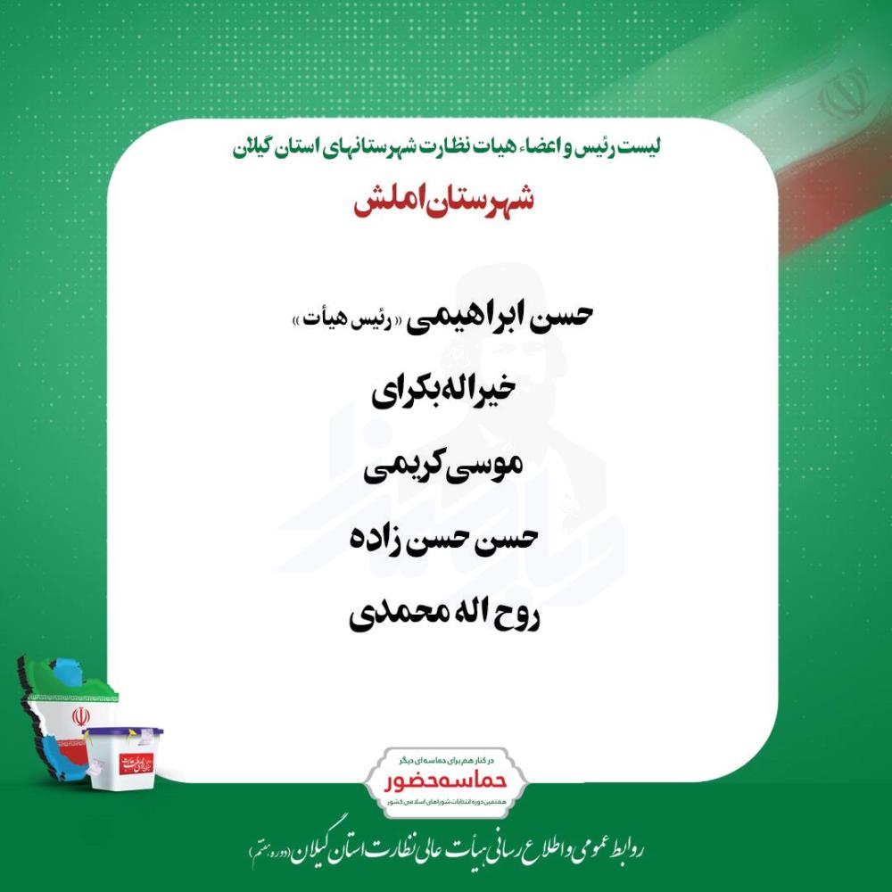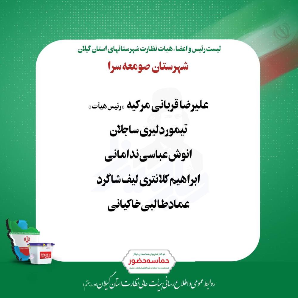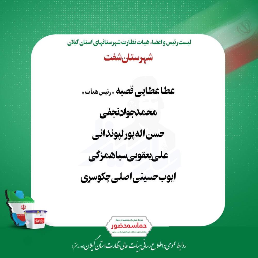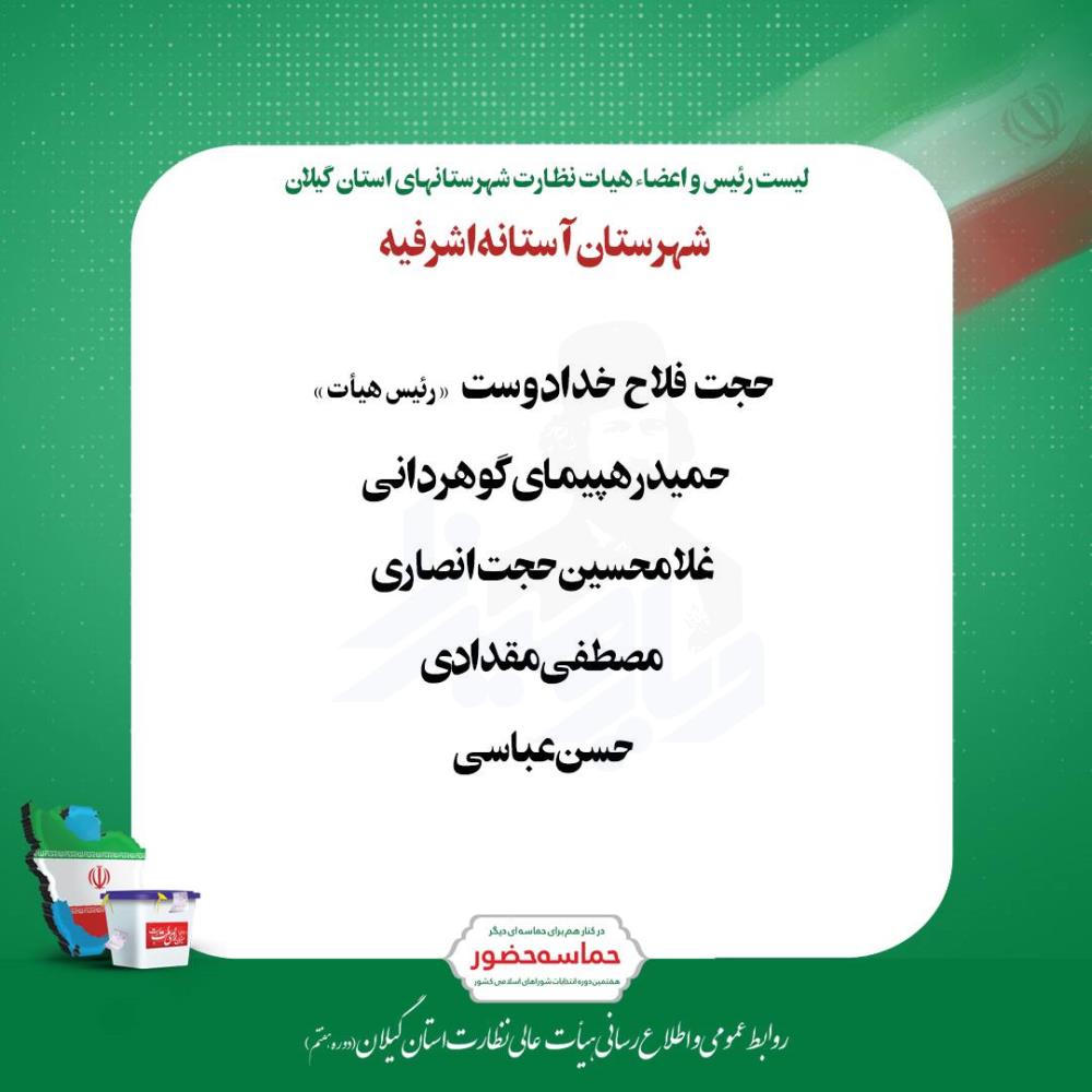 به گزارش پایگاه اطلاع رسانی جلال شرق، بر اساس حکم هیأت مرکزی انتخابات شوراهای اسلامی کشور، اعضای هیأت نظارت شهرستانهای استان گیلان مشخص شدند.
