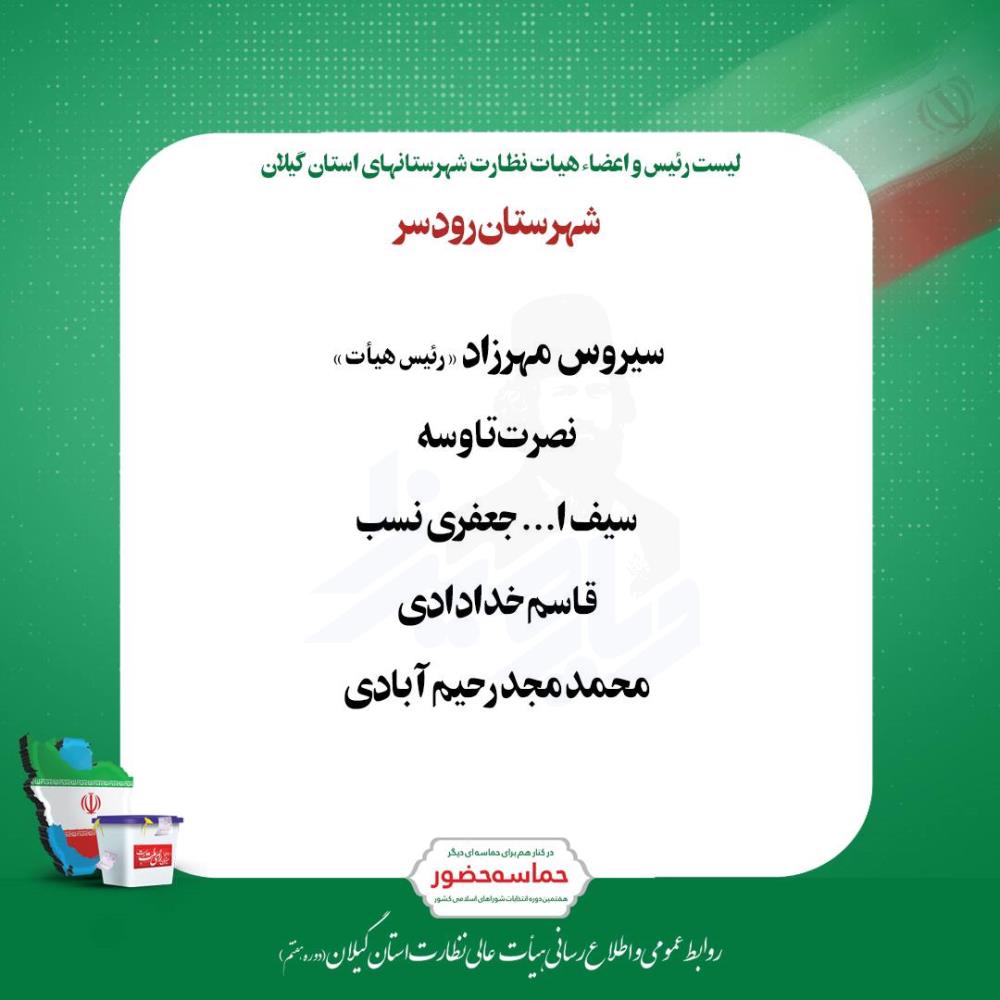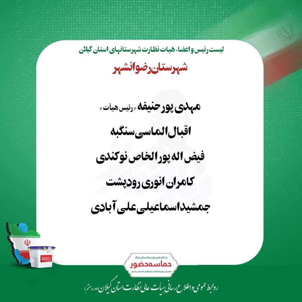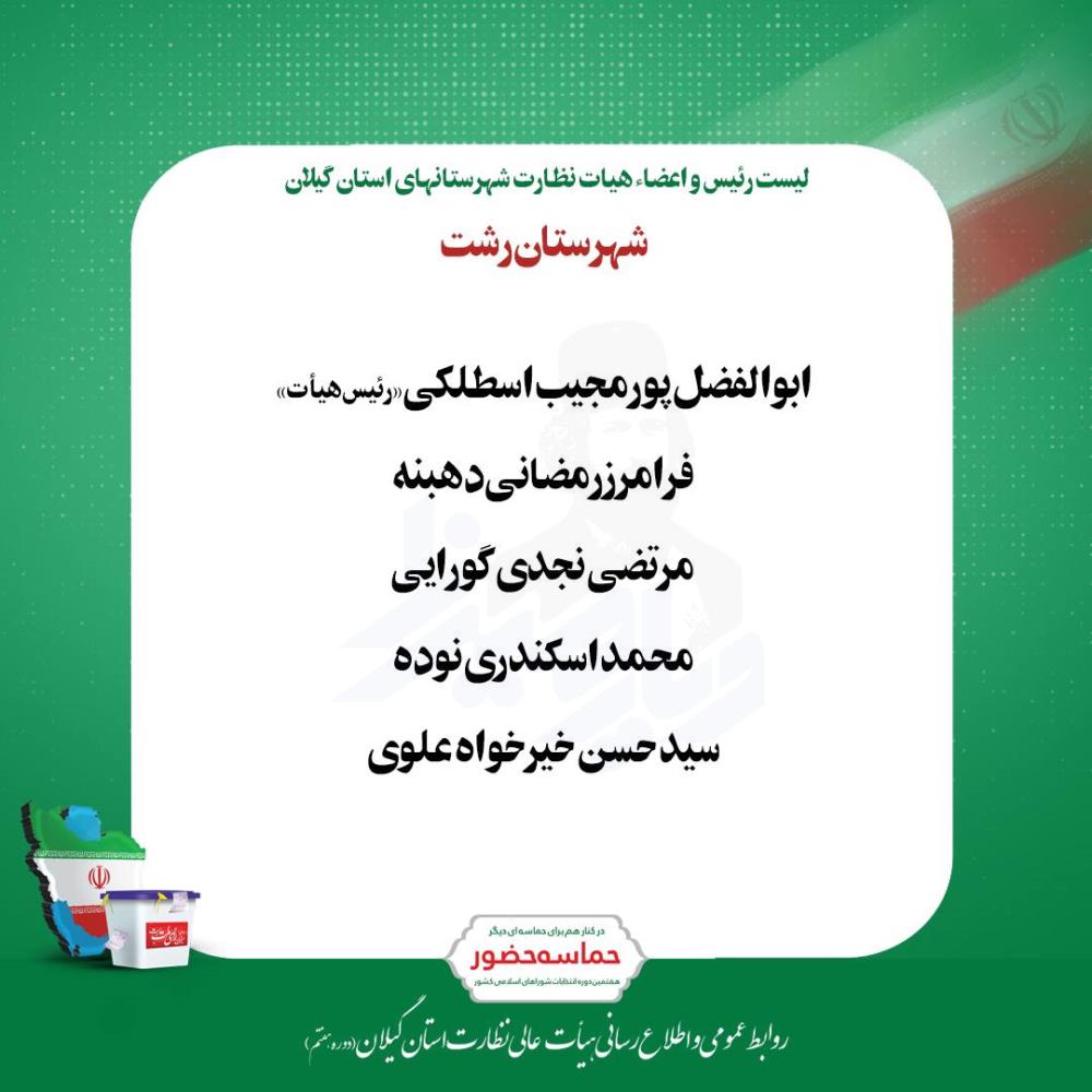 بر اساس حکم هیأت مرکزی انتخابات شوراهای اسلامی کشور، اعضای هیأت نظارت شهرستانهای استان گیلان برای انتخابات شورای هفتم مشخص شدند.
