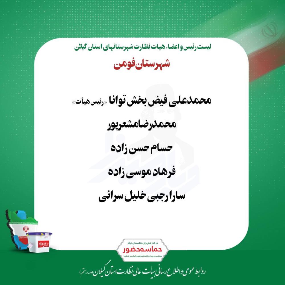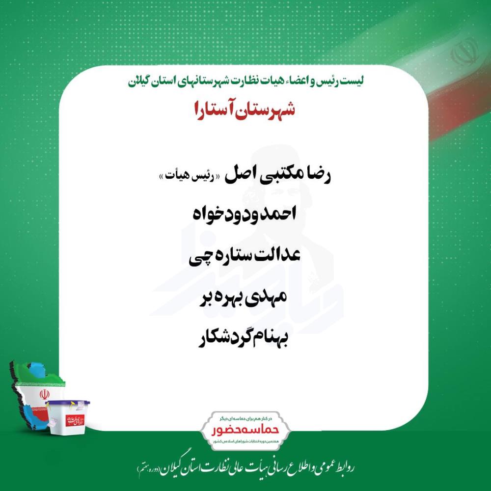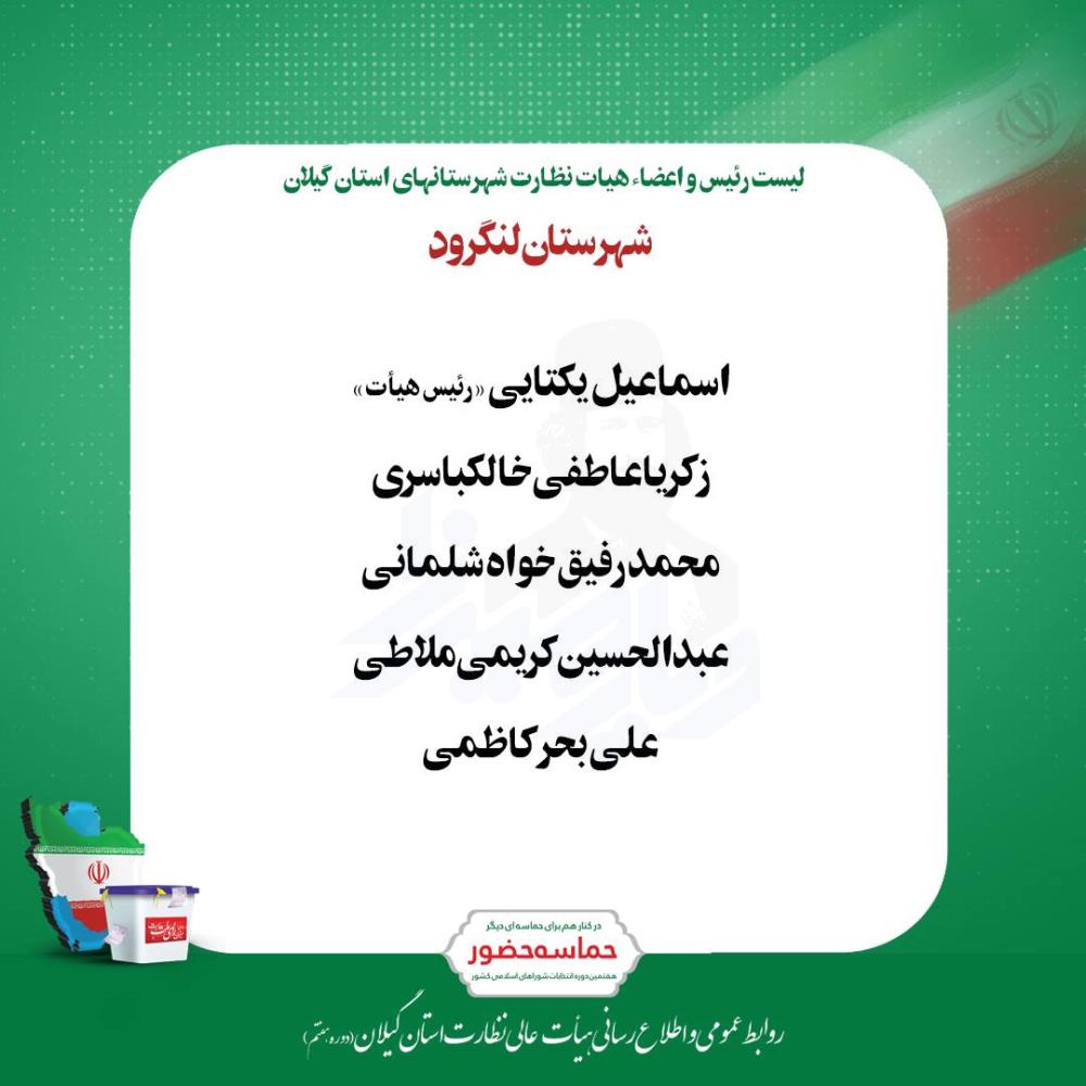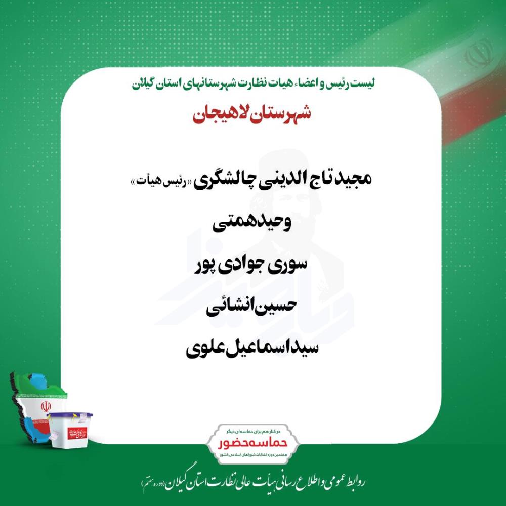 بر اساس حکم هیأت مرکزی انتخابات شوراهای اسلامی کشور، اعضای هیأت نظارت شهرستانهای استان گیلان برای انتخابات شورای هفتم مشخص شدند.
