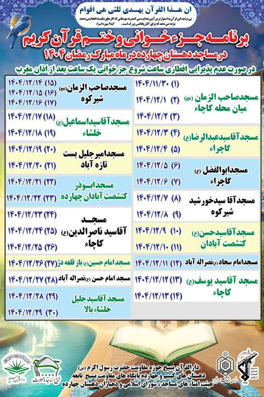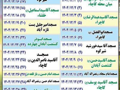 وی افزود: برنامه های فرهنگی مذهبی ماه رمضان و طرح ضیافت الهی شامل استفاده از روحانیون و مبلغین بومی و اعزامی و اقامه نماز جماعت و بیان احکام شرعی و پاسخ به سوالات شرعی و دینی و سخنرانی و افطاری ساده و برپایی محافل انس با قرآن کریم و جز خوانی روزانه قرآن کریم و برپایی مراسم رحلت حضرت خدیجه(س) مادر امت در شب دهم ماه مبارک رمضان و مراسم جشن میلاد حضرت امام حسن مجتبی علیه السلام در نیمه ماه رمضان و برگزاری مراسم های شب های قدر و مناجات خوانی و احیای شب قدر و قرائت دعای افتتاح و جوشن کبیر و برگزاری مراسم شهادت امام علی علیهالسلام و اجرای قرار دوازدهم و تهیه بستههای معیشتی و افطاری ساده با همکاری خادمیاران رضوی در حرم مطهر سید جلالالدین اشرف (ع ) و پخش چای حضرت امام رضا علیه السلام در چایخانه حرم مطهر سید جلالالدین اشرف ( ع ) از دیگر برنامههای طرح ضیافت الهی می باشد.