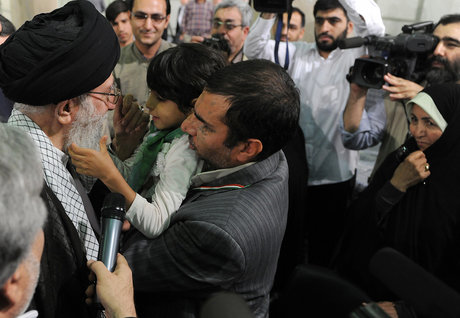 آقا رفته و نرفته سراغ جانباز بعدی، دختر کوچک جانباز که پنج ساله به نظر میرسد میپرد جلو: سلام حاج آقا! شعر بخونم!