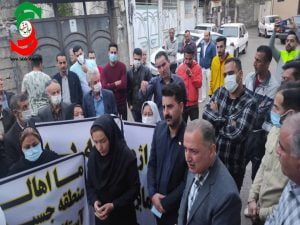 عصر امروز جمعی از این خانواده ها با پرده نوشته «نه به تخریب » اینکه چرا باید چوب کمکاری و قصور مسئولین را با صدور مجوز درساخت را ما خریداران ملک باید بدهیم تجمع خود را در جلوی منزل امام جمعه شهر آستانهاشرفیه برپا کردند.