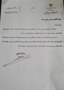 به گزارش پایگاه اطلاعرسانی جلال شرق،در حکم صادره از سوی اسدالله عباسی آمده است،با توجه به سوابق تجربی شما به موجب این حکم به سمت سرپرست بخشداری مرکزی شهرستان آستانهاشرفیه منصوب می شوید.