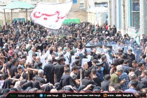ورود کاروان اشقیا و اسرا از یک سو و نواختن شیپور عزا و مارش جنگی از سوی دیگر همراه با غل و زنجیر کشیدن و سربریدن طفلان اهل بیت پیامبر در صحرای کربلا و نوای حسین ، حسین گفتن عزاداران در بحبوحه ی سوختن و شعله کشیدن خیام ، جلوه هایی از مصیبت های حسین و یاران با وفایش را به تصویر می کشد که دل هر عزاداری را به در د و چشمانشان را اشکبار می سازد