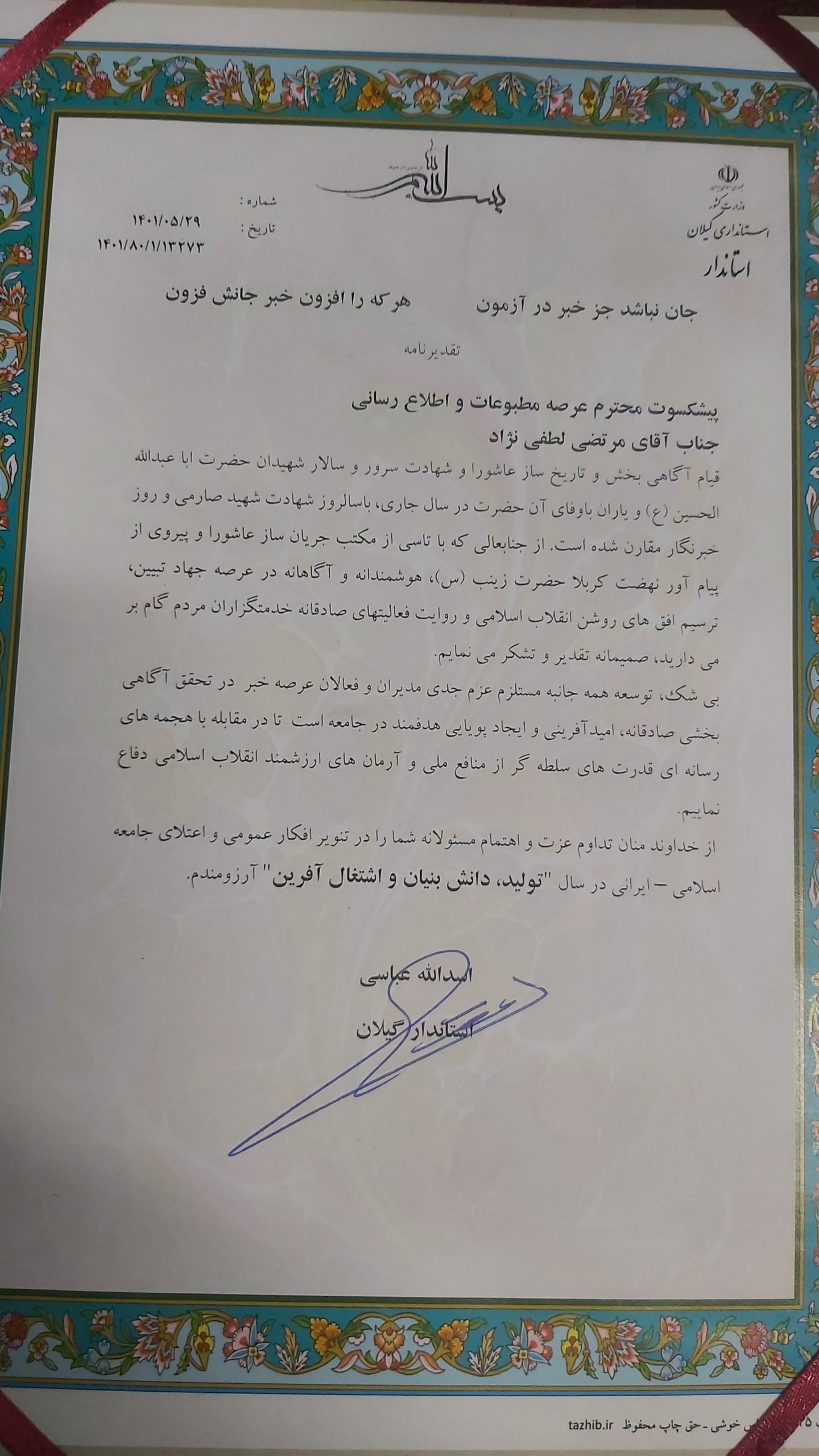 نماینده عالی دولت دراستان از اهمیت و جایگاه نقد از سوی خبرنگاران و اصحاب رسانه