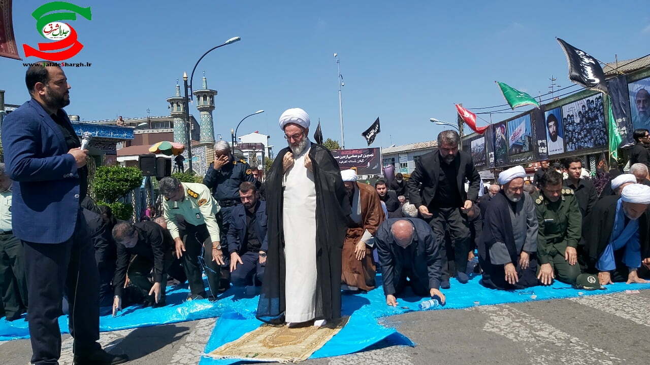 اقامه نماز ظهر و عصر به امامت نماینده ولی فقیه در استان گیلان از دیگر جلوه های مراسم اربعین حسینی این شهرستان بود که با صدای موذن ، عزاداران در صفوفی منسجم به اقامه نماز پرداختند.