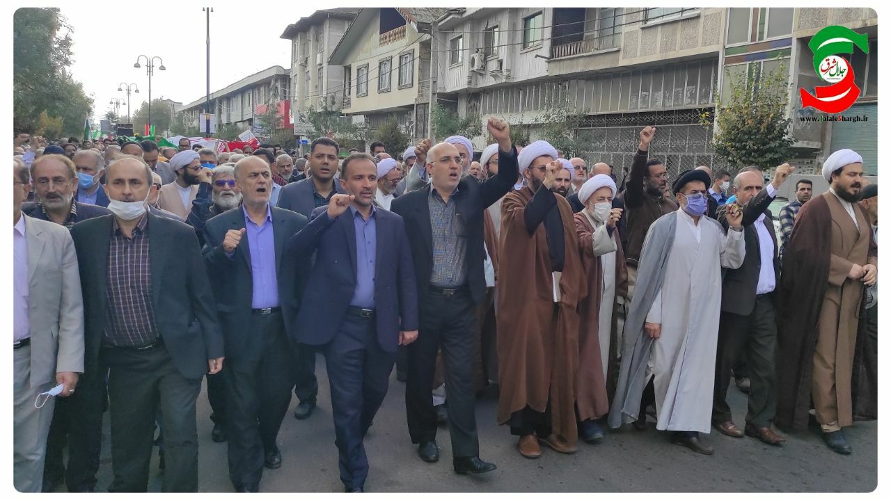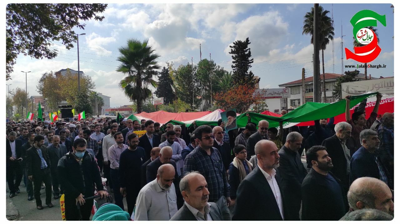 به گزارش جلال شرق ، این مراسم که از مقر پایگاه فرهنگی و تربیتی بسیج تا صحن حرم مطهر سلطان سید جلال الدین اشرف برگزارشد ، راه پیمایان در طول مسیر با شعارهای الله اکبر ، مرگ بر اسرائیل و مرگ بر اسرائیل ، پرچم امریکا را در طول مسیر و هم چنین در صحن حرم مطهر به آتش کشیدند ، اجرای سرود توسط نوجوانان و نونهالان توسط گروه سرود «به رنگ آسمان» در صحن حرم مطهر و قرائت قطعنامه راه پیمایی ۱۳ آبان و حضور راه پیمایان برای اقامه نماز جمعه از دیگر برنامه های روز ۱۳ اّبان در این شهر بوده است