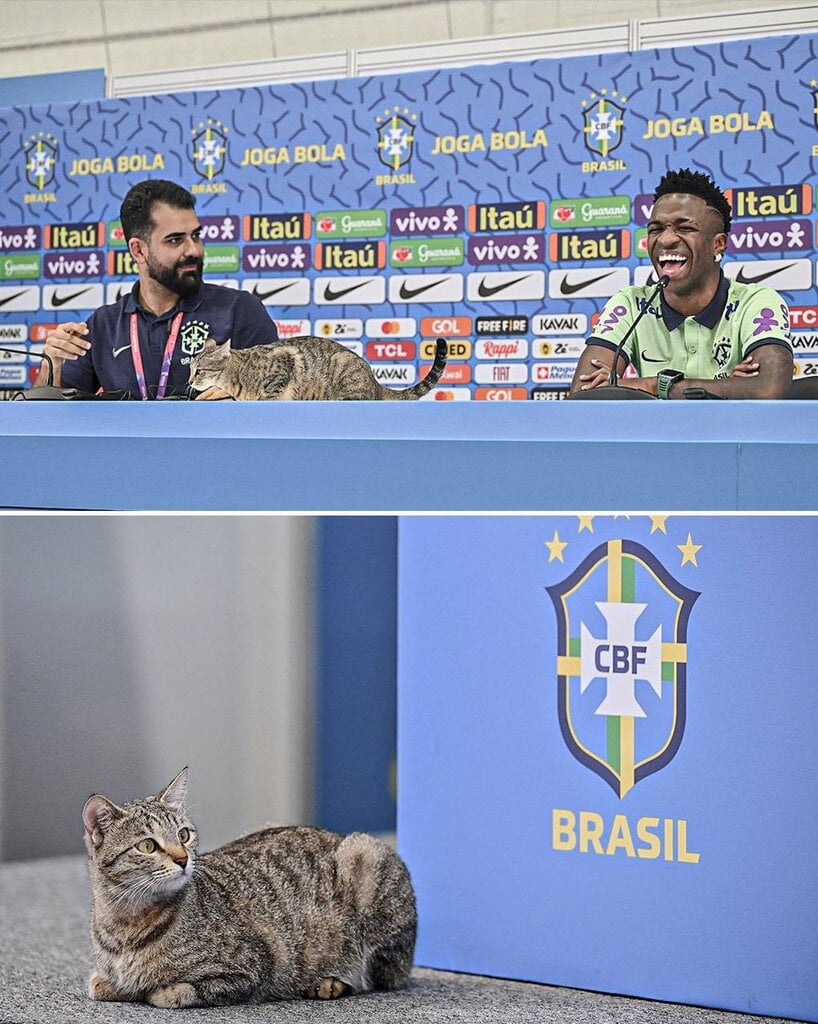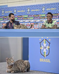 در نشست خبری این دیدار و زمان مصاحبه «وینیسیوس» یک گربه فضای جالبی به اتاق داد و باعث شد تا این گربه سوژه اخبار دنیا شود.