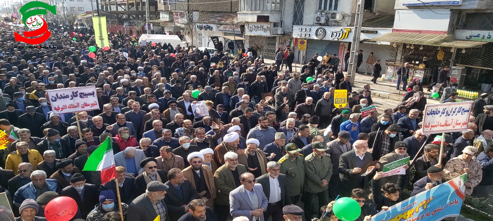 در چهل و چهارمین سالگرد انقلاب اسلامی بار دیگر اقشار مختلف مردم آستانه اشرفیه با حضور در یک راه پیمایی و صفوف منسجم انقاب اسلام یایران را جشن گرفتند.