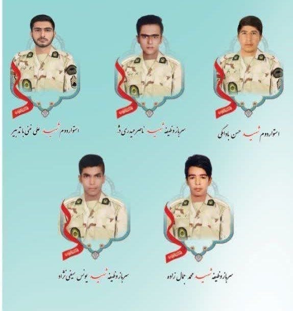 به گزارش جلال شرق، بر اساس اطلاعیه مرکز اطلاع رسانی و ارتباطات فراجا، اسامی شهدای مرزبان در سراوان به نامهای گروهبان یکم شهید “حسین بادامکی”، گروهبانیکم شهید “علی غنی با تدبیر”، سرباز وظیفه شهید “محمد جمالزاده”، سرباز وظیفه شهید “یونس سیفی نژاد” و سرباز وظیفه شهید “ناصر حیدری” اعلام شد.