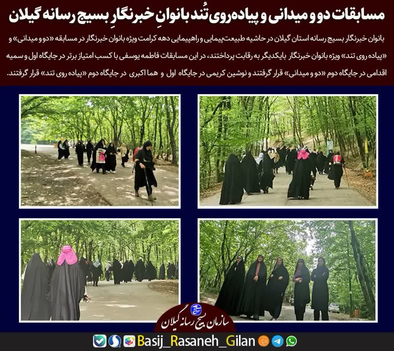 همچنین در رشته«پیاده روی تند» و «دو و میدانی» ویژه بانوان خبرنگار ،نوشین کریمی و هما اکبری رتبه اول و دوم و در رشته «دو و میدانی» فاطمه یوسفی و سمیه اقدامی رتبه اول و دوم برگزیده شدند.