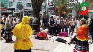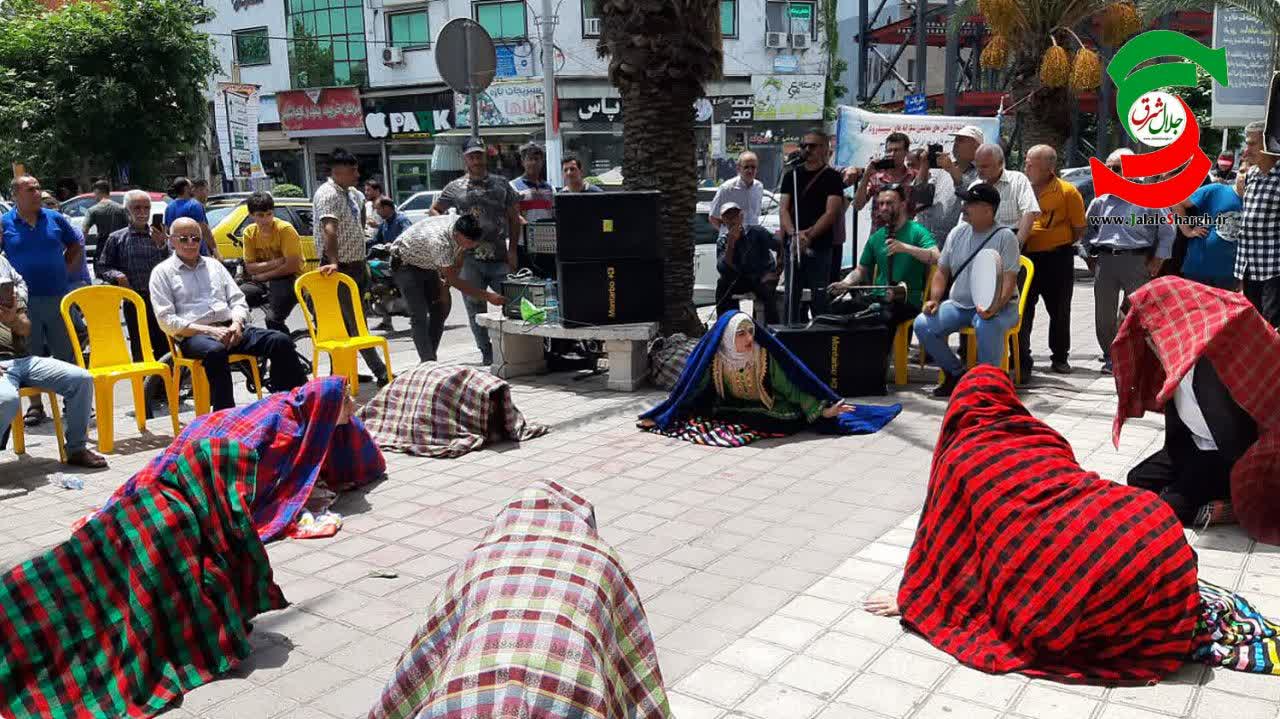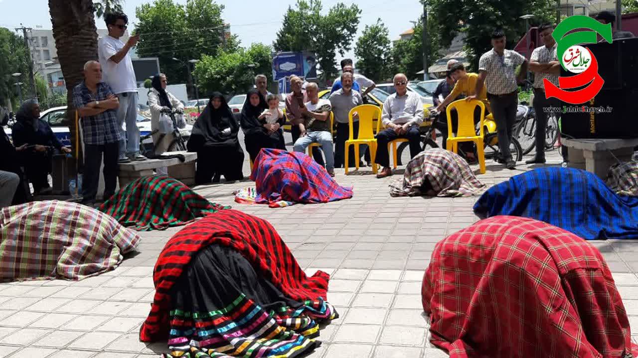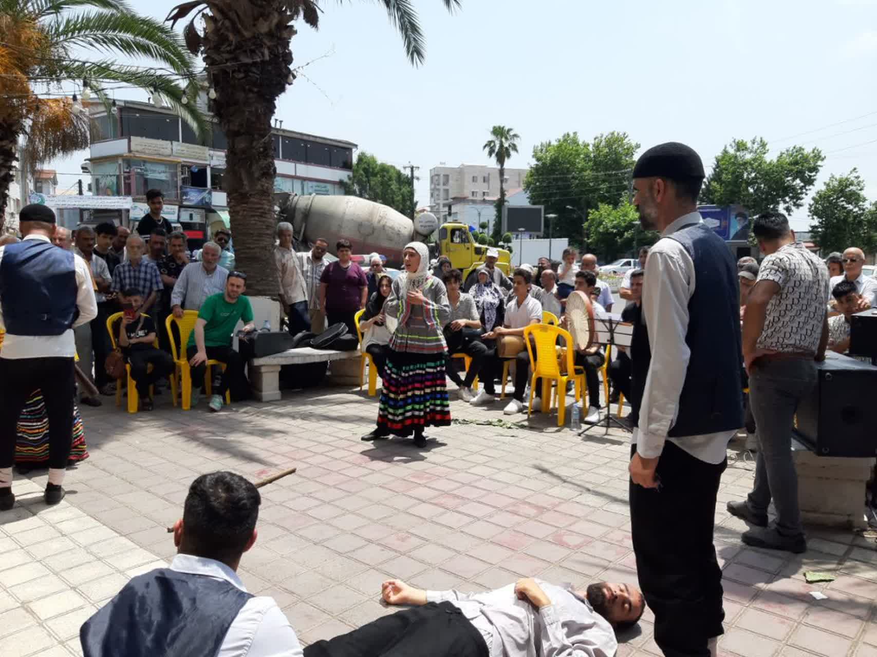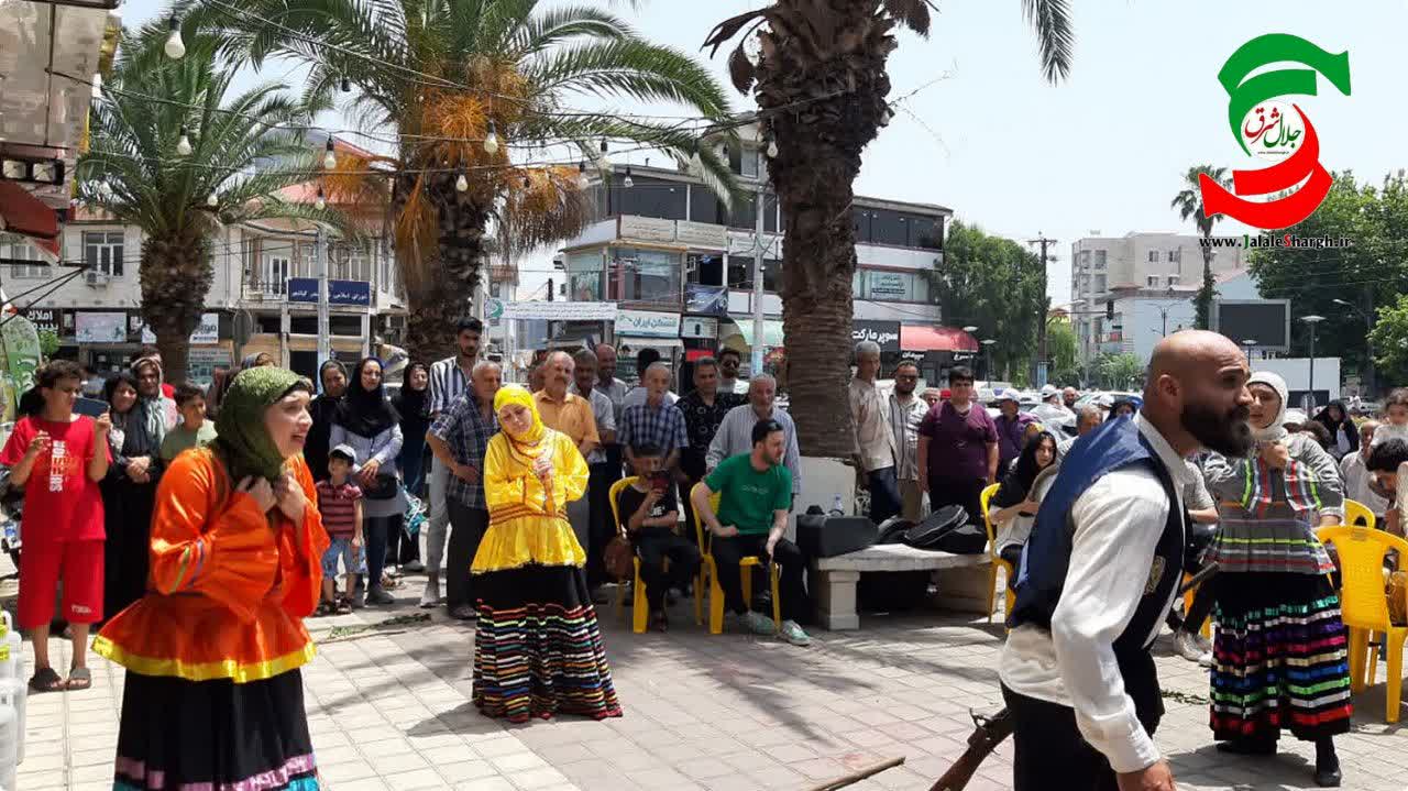 و هلونه به کارگردانی میلاد حسین زاده از آستانه اشرفیه در میدان ثارالله بندرکیاسهر با حضور تماشاگران نمایش خیابانی خود را اجرا کردند.