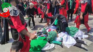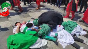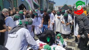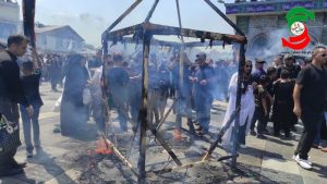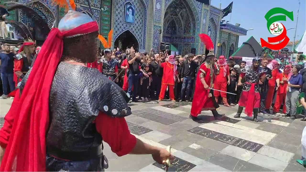 لحظاتی که خیمه ها از خیمه گاه بر روی دستان عزاداران به سمت حرم مطهر سلطان سید جلال الدین اشرف به حرکت در می آید ، دستجات و گروه های مذهبی این شهرستان ، با مراثی و سینه زنی خود را برای اجرای یک آئین نمایشی و سنتی آماده می کنند.