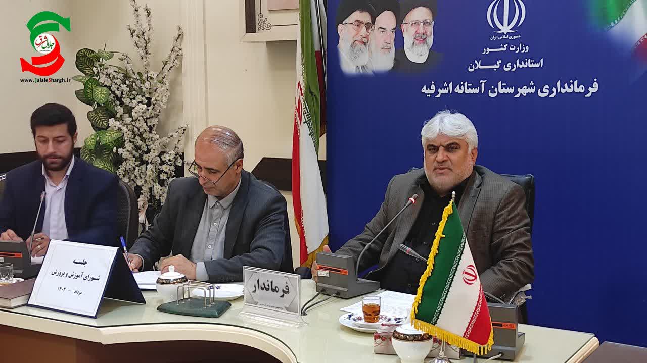 به گزارش جلال شرق، خسرو آرنگ ؛فرماندار آستانه اشرفیه در نشست شورای آموزش و پرورش شهرستان از تأثیرگذاری نهاد فرهنگی آموزش و پرورش سخن گفت و افزود: در فراهم کردن بسترهای مختلف آموزش و پرورش نهایت اهتمام و دقت لازم، ضروری است