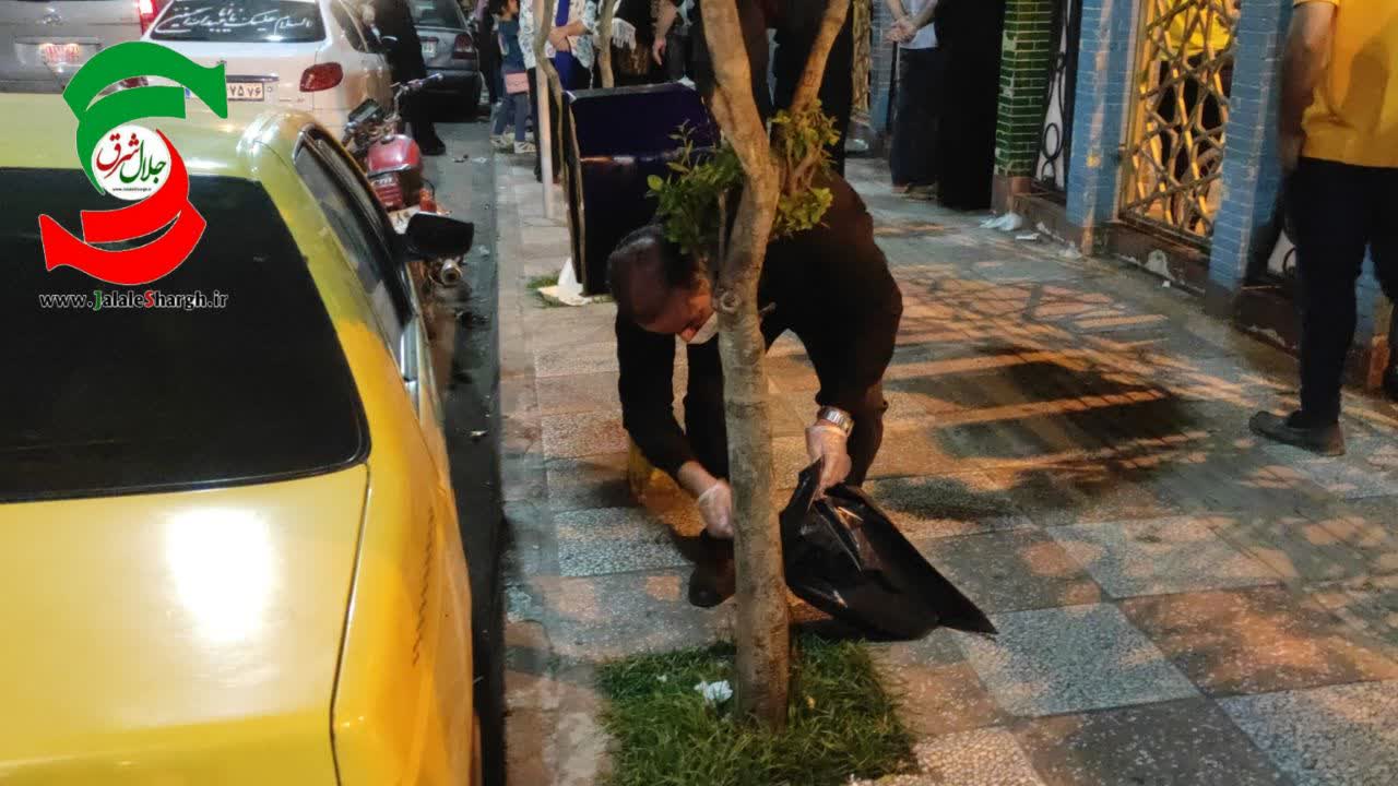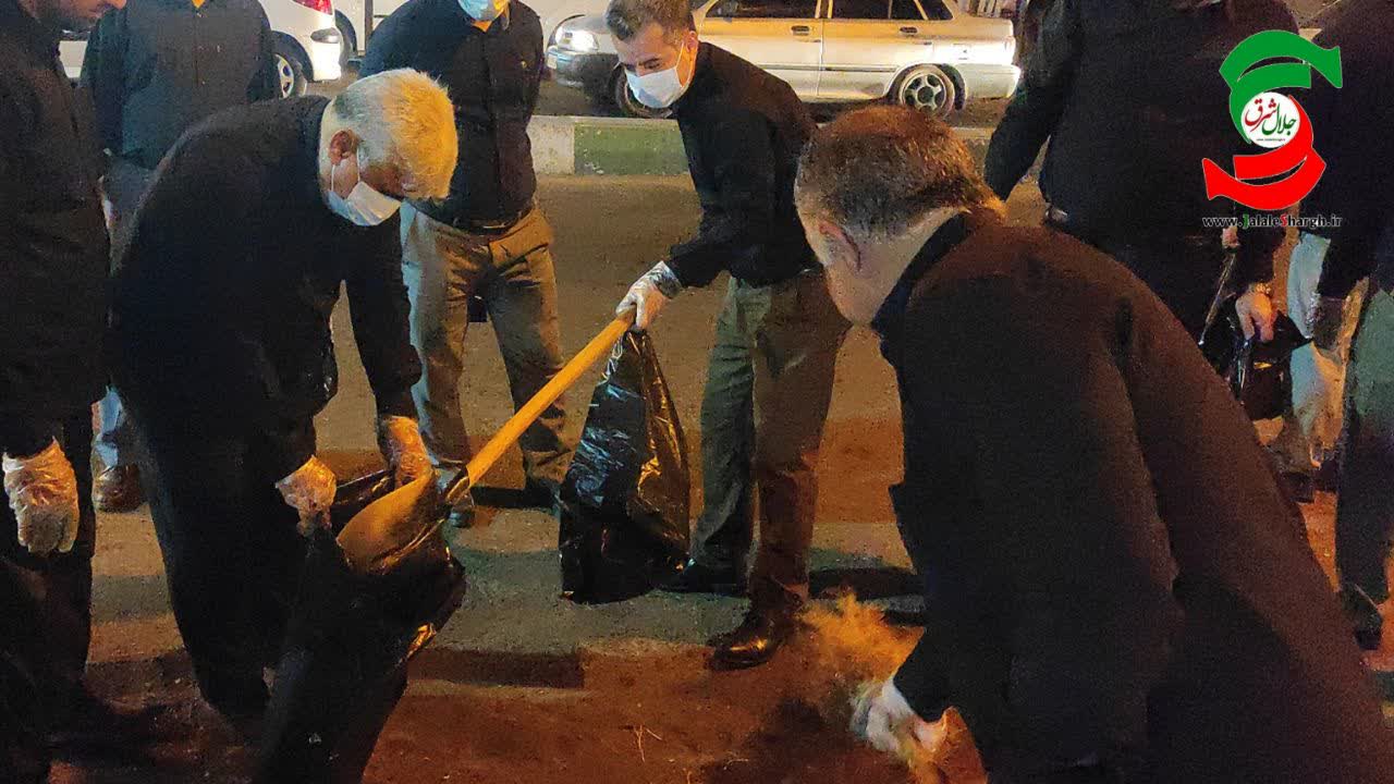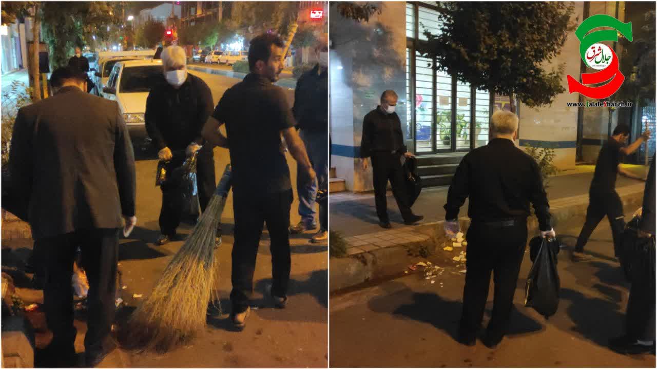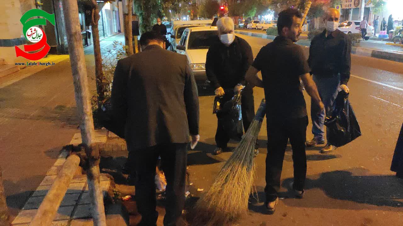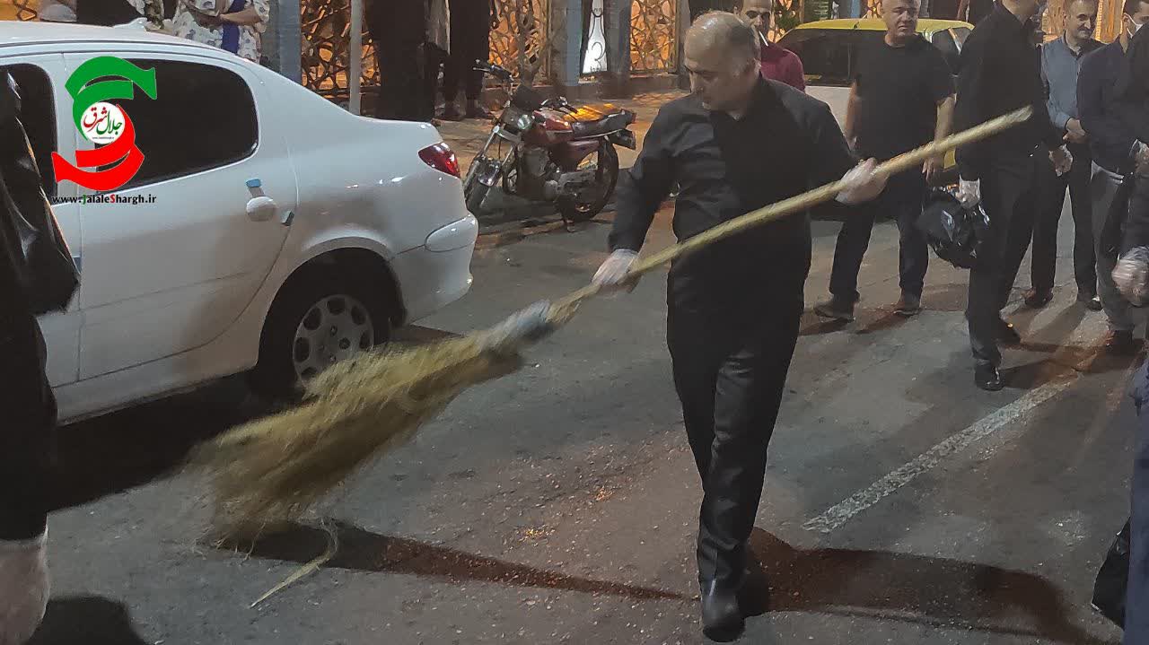 ساعاتی از آغاز بامداد اربعین حسینی، محل اجتماع بزرگ عزاداران حسینی از میدان حرم تا محل ورودی خیابان شهید کاظم پور روبروی داروخانه قدس ، توسط فرماندار و مسئولین شهرستان پاکسازی و شست و شو شد.