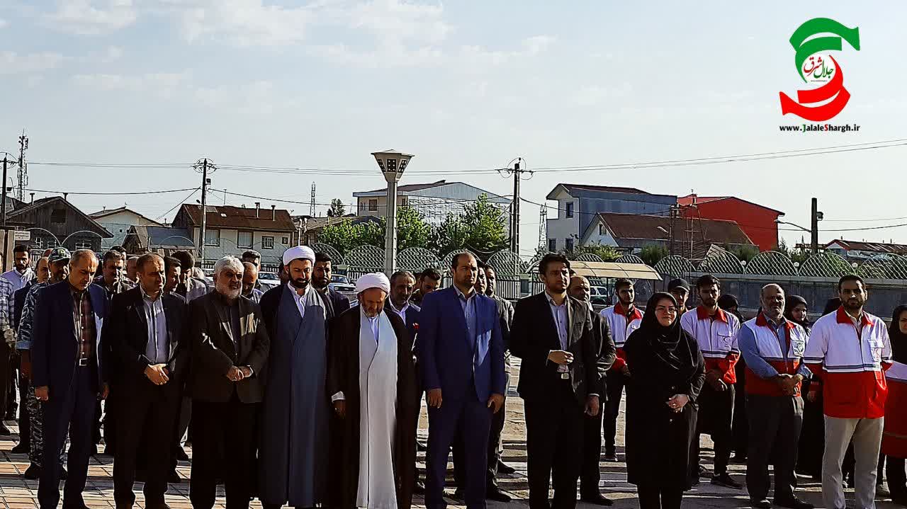 همزمان با سراسر استان ؛مراسم صبحگاه مشترک ،برافراشتن پرچم جمهوری اسلامی ایران ، آیین مهمانی لاله ها (گلباران و عطرافشانی گلزار مطهر شهدا) با حضور فرماندار، رییس دادگستری ،دادستان، شهردار، نیروی انتظامی و نظامی ، روسای ادرات شهرستانآستانه اشرفیه و بسیجیان در گلزار شهدای این شهرستان برگزارشد.
