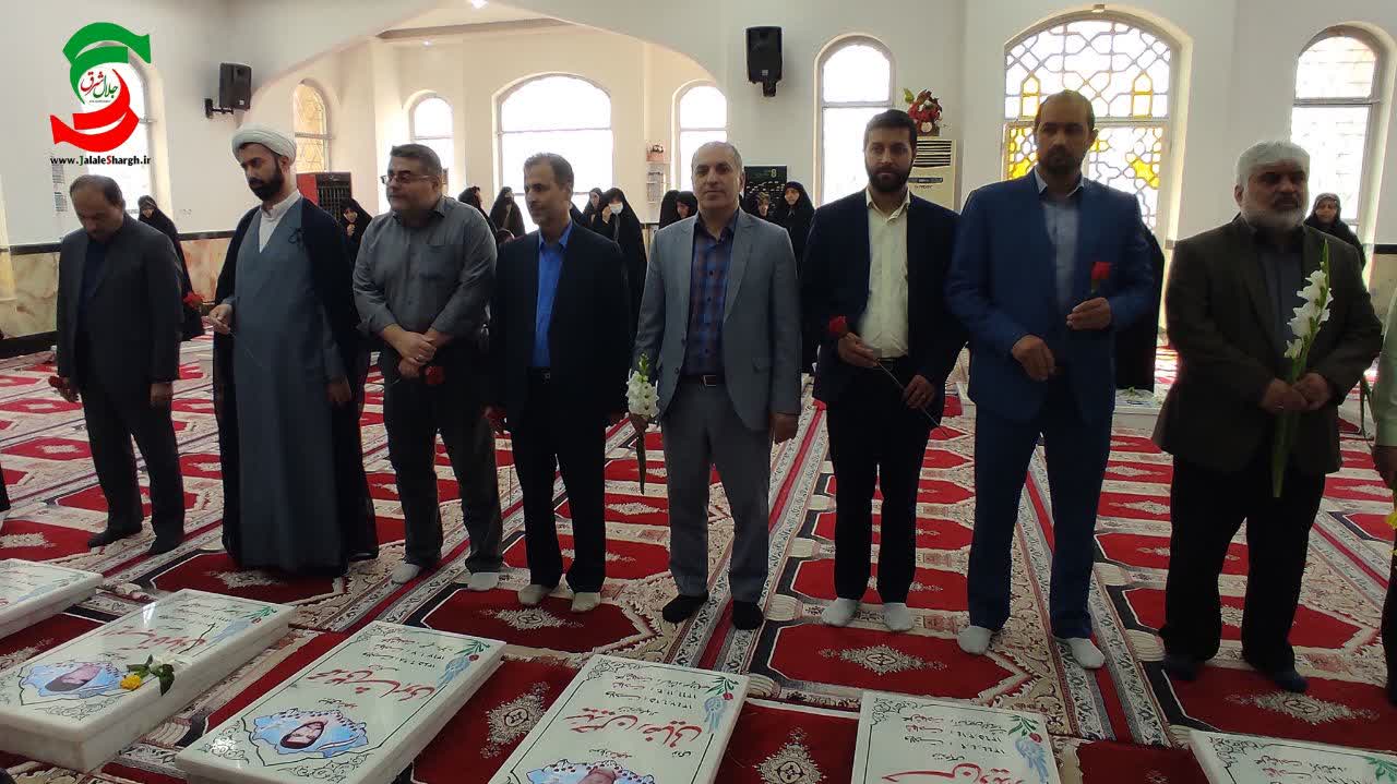 به گزارش جلال شرق، اعضای حاضر در مراسم پس از ادای احترام به پرچم و نواختن سرود جمهوری اسلامی با حضور در گلزار این ئشهرستان ضمن گل افشانی و ادای احترام و بیعت با آرمان های شهدای ۸ سال دفاع مقدس با نثار فاتحه و دعا ریال یاد و خاطره شهدای ۸ سال دفاع مقدس را گرامی داشتند.