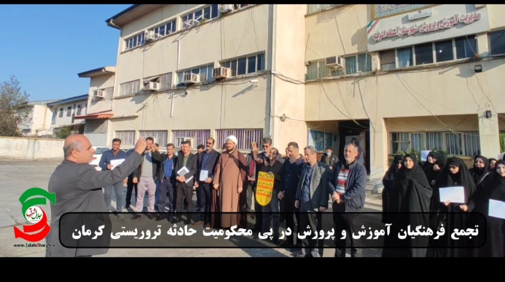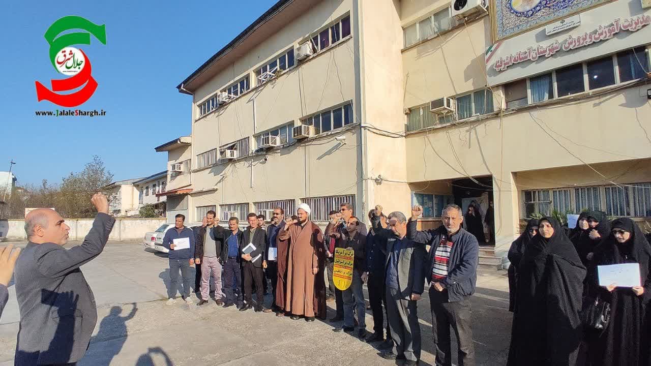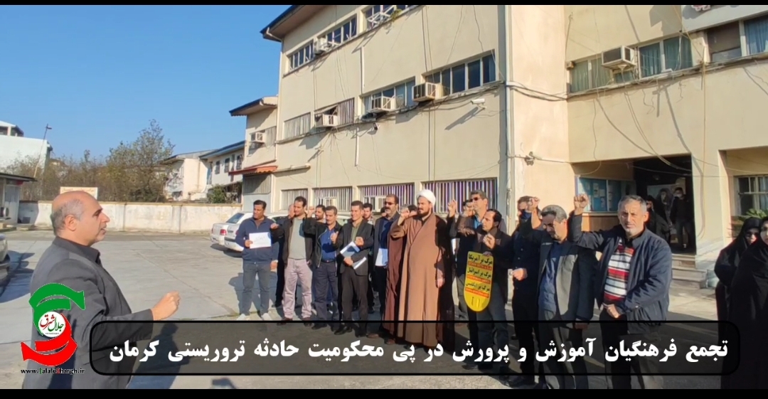 جمعی از فرهنگیان آموزش و پرورش شهرستان آستانه اشرفیه در پی محکومیت حادثه تروریستی کرمان در محوطه آموزش و پرورش شهرستان تجمع کردند.