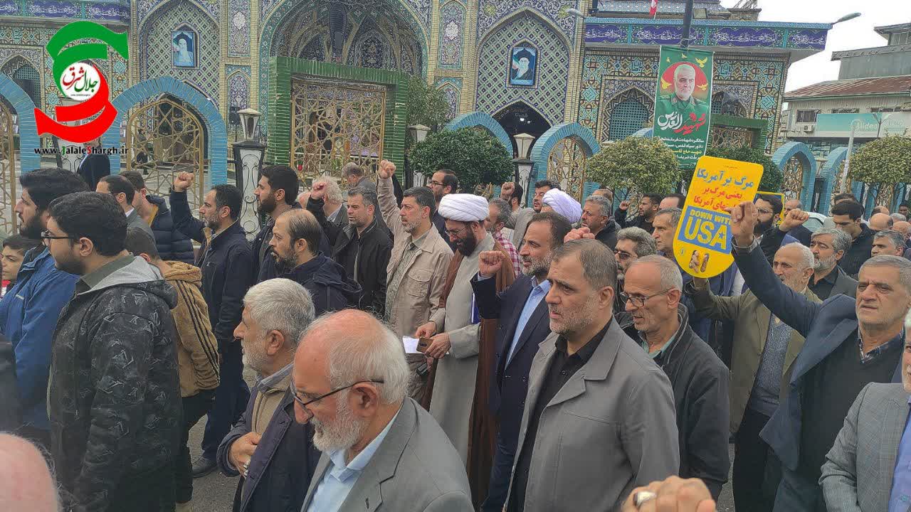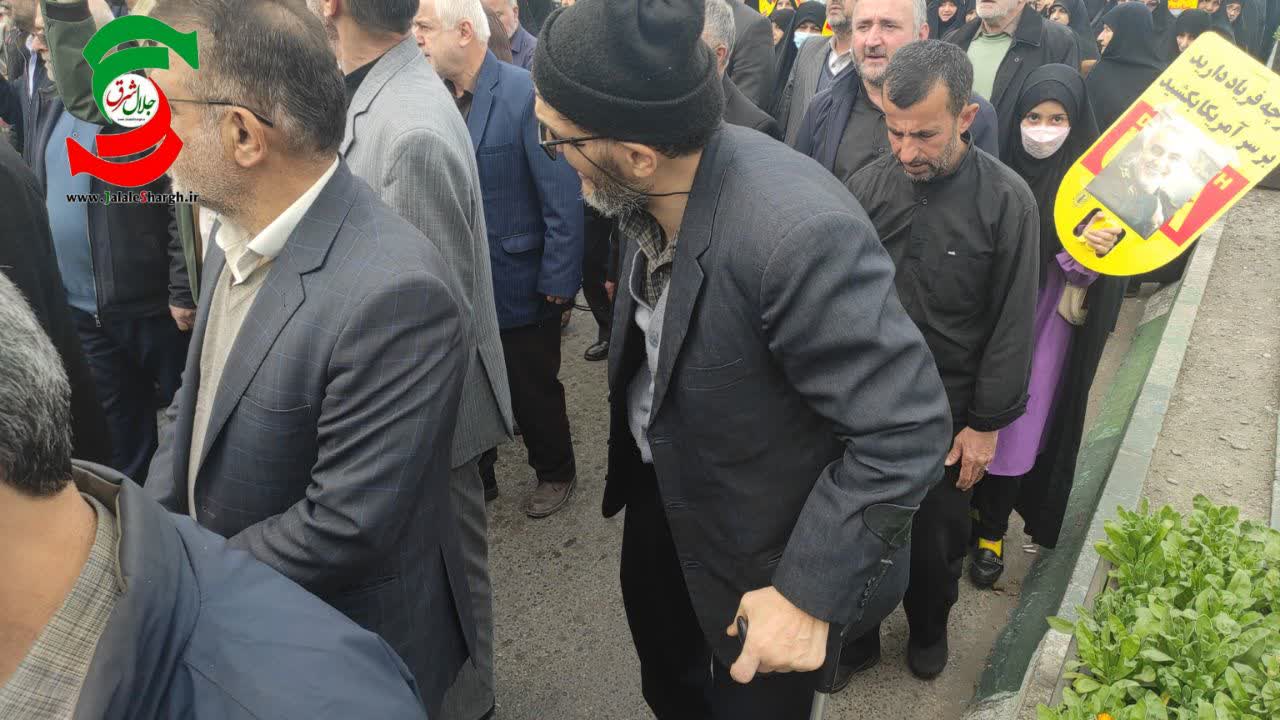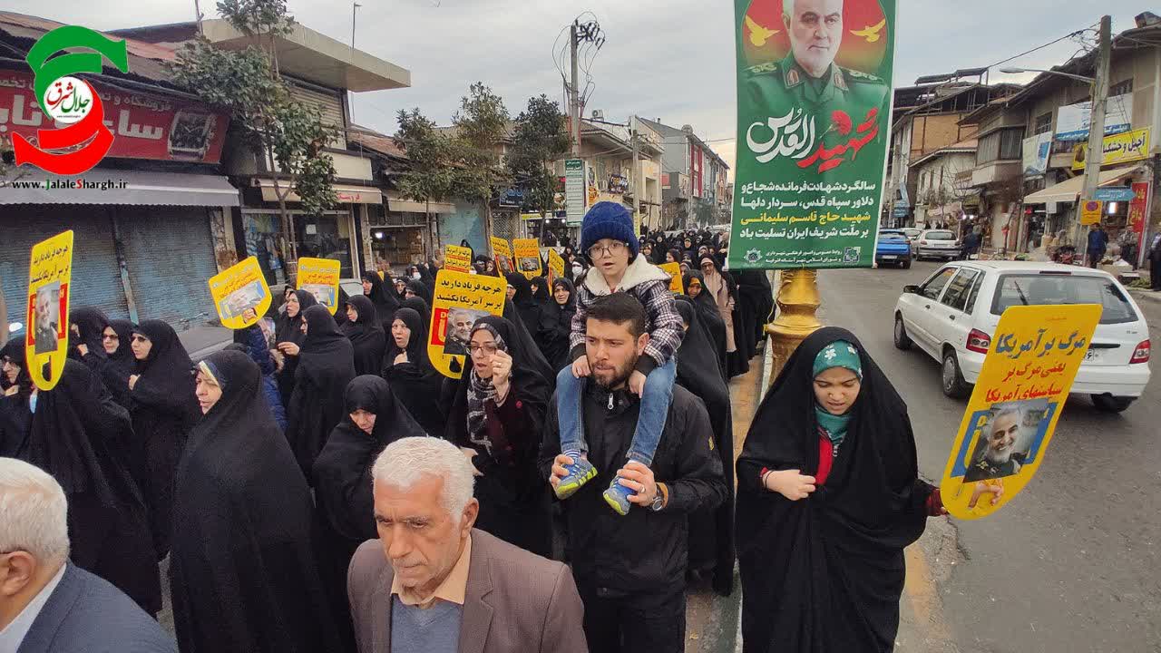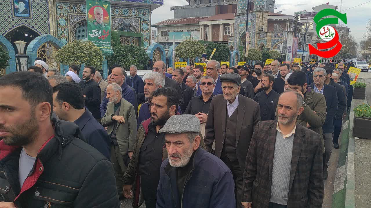به گزارش پایگاه اطلاعرسانی جلال شرق، عصر امروز بعد از نماز جمعه، مردم ولایتمدار آستانه اشرفیه به همراه جمعی از مسئولین شهرستان در پی محکومیت حمله تروریستی به زائران شهید حاج قاسم سلیمانی در کرمان از مصلی نماز جمعه تا حرم مطهر آقاسید جلال الدین اشرف را با شعار مرگ بر صهیونیست، مرگ بر اسرائیل و مرگ بر آمریکا طی کردند .