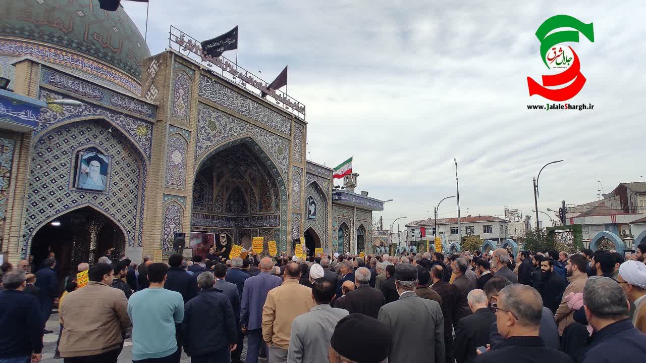 راه پیمایان پس از اجتماع در صحن آقا سید جلال الدین اشرف با قرائت بیانیه محکومیت این اقدام را خواستار شدند .