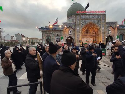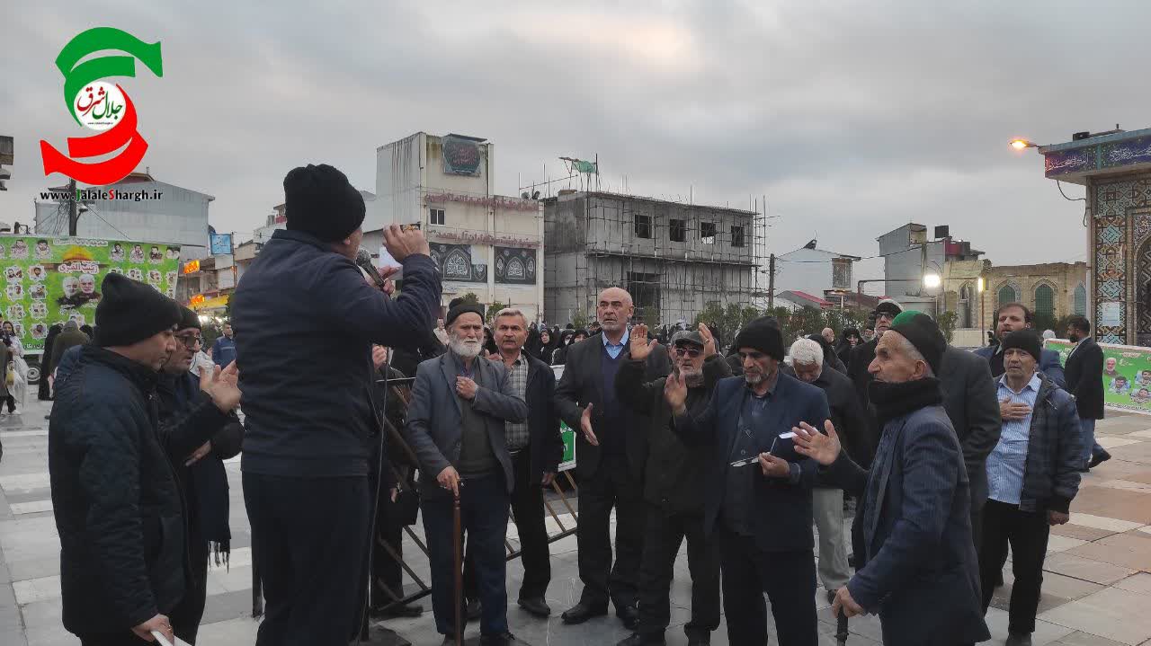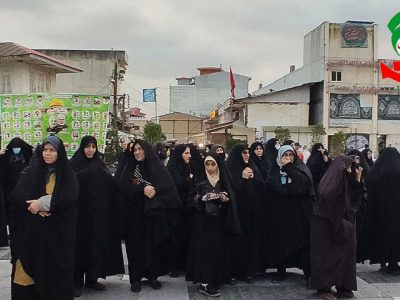 کاروان عزاداری حضرت زینب(س) از شهرستان نکا استان مازندران در حرم سلطان سید جلال الدین اشرف آستانه اشرفیه با حضور پدران شهدای مدافع حرم به عزاداری پرداختند