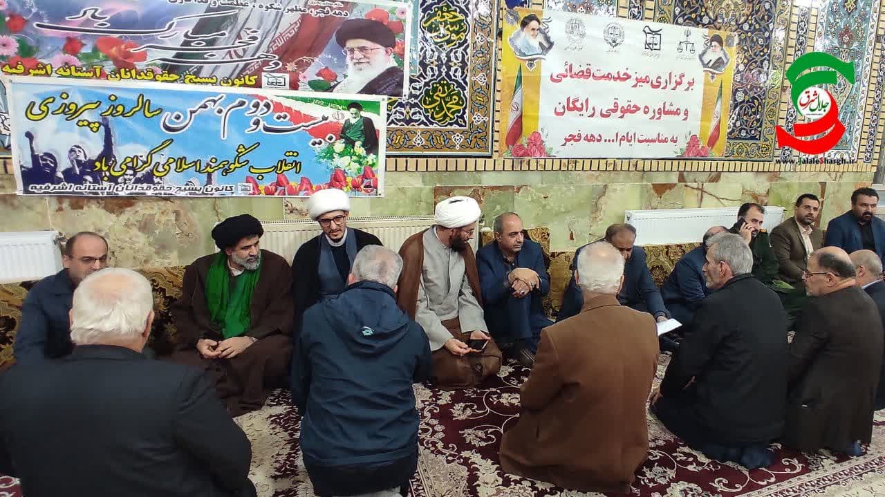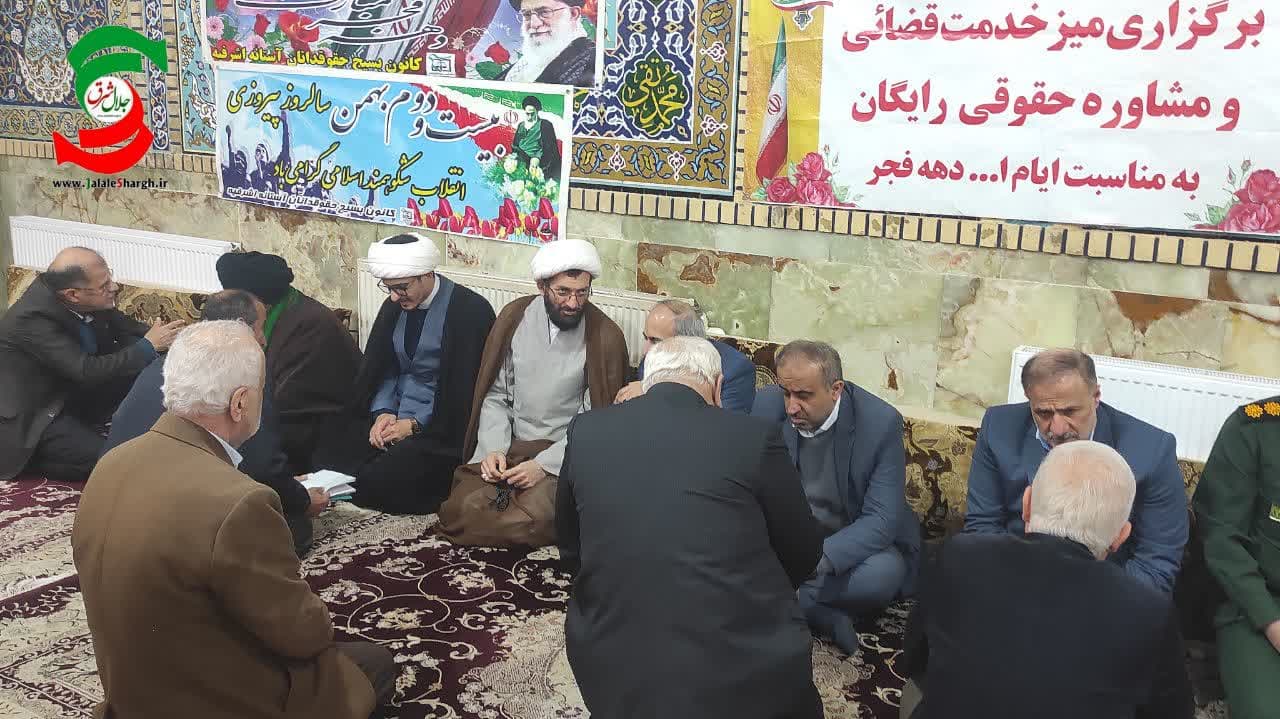 به مناسبت دهه مبارک فجر، میز خدمت قضایی و مشاوره حقوقی به همت دادگستری شهرستان آستانه اشرفیه و بسیج حقوق دانان این شهرستان در راستای اجرای طرح تحول دستگاه قضا با مردم نمازگزار در مسجد جامع این شهرستان صورت گرفت.