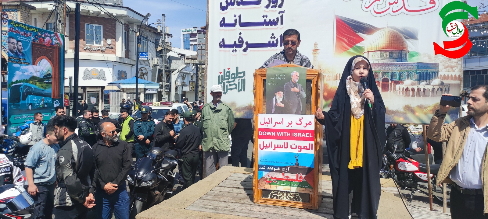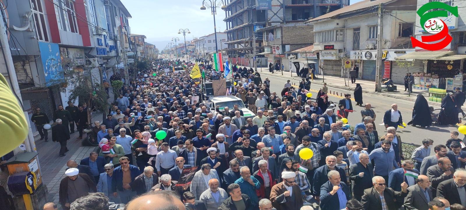 به گزارش جلال شرق، پارسا ذرعی– مراسم راه پیمایی آستانه اشرفیه ساعت ۱۰صبح امروز از مقر کانون فرهنگی ناحیه مقاومت بسیج و بندر کیاشهر از جنب بخشداری آغاز شد و راه پیمایان درحالیکه بر نوشته هایی با مضمون مرگ بر آمریکا و اسراییل و تصاویری از جنایات رژیم اسراییل در سرزمین های اشغالی به ویژه غزه در دست داشتند بعد از طی خیابان اصلی این شهر در استانه اشرفیه جلوی صحن حرم و در کیاشهر میدان شهرداری گرد آمدند و پس از استماع دکلمه به سخنان مدعوین مراسم گوش فرا دادند و در پایان قطعنامه راه پیمایی قرائت شد.