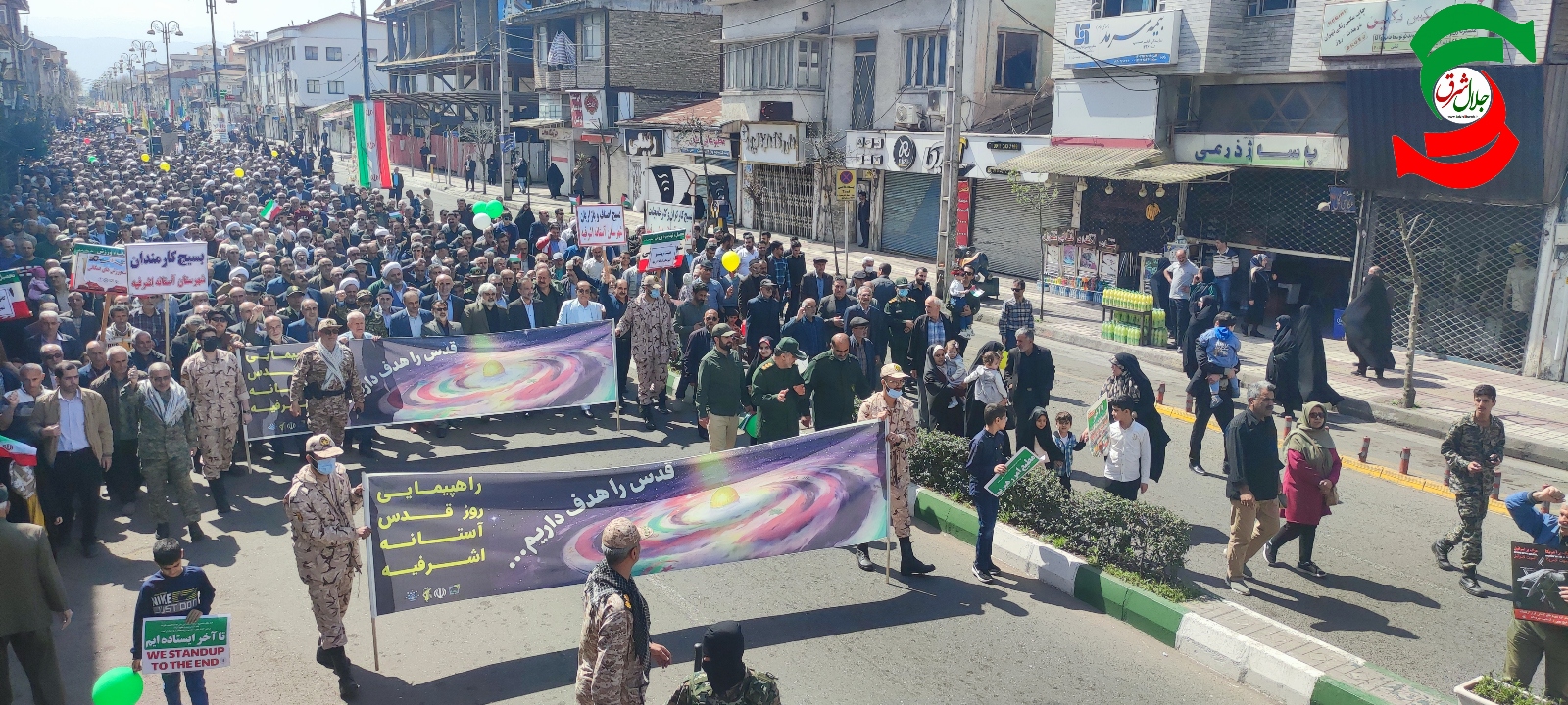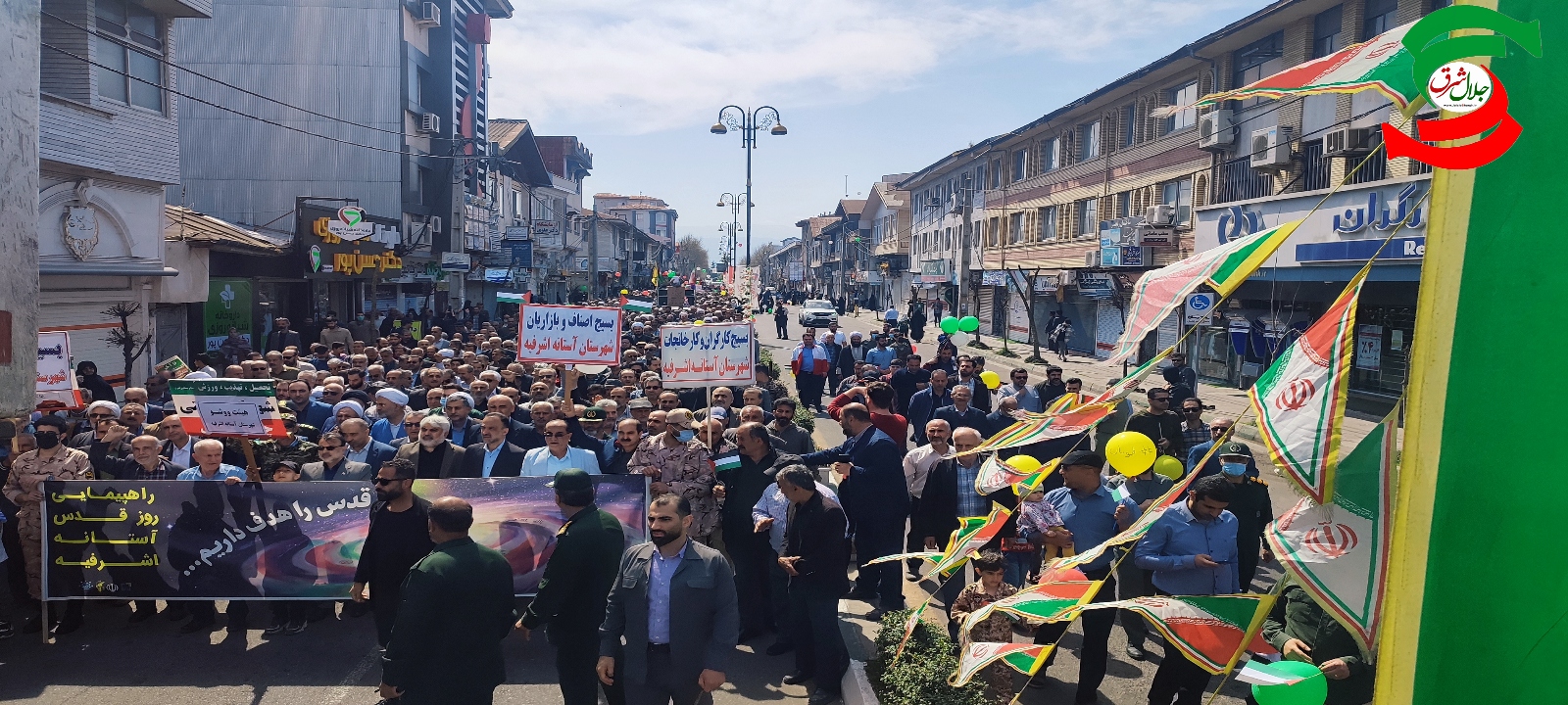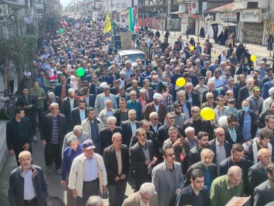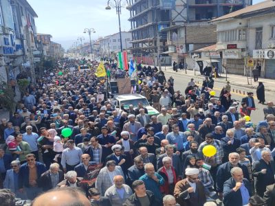 آخرین روز جمعه از ماه مبارک رمضان و روز جهانی قدس ، مردم مومن و روزه دار شهرهای آستانه اشرفیه و بندر کیاشهر در حمایت از مردم سرزمین غزه و محکوم کردن جنایات رژیم کودک کش صهیونیستی در یک راه پیمایی وحدت آفرین ، بار دیگر حمایت خود را از آرمان های مردم فلسطین و آزاد سازی قدس شریف اعلام کردند.