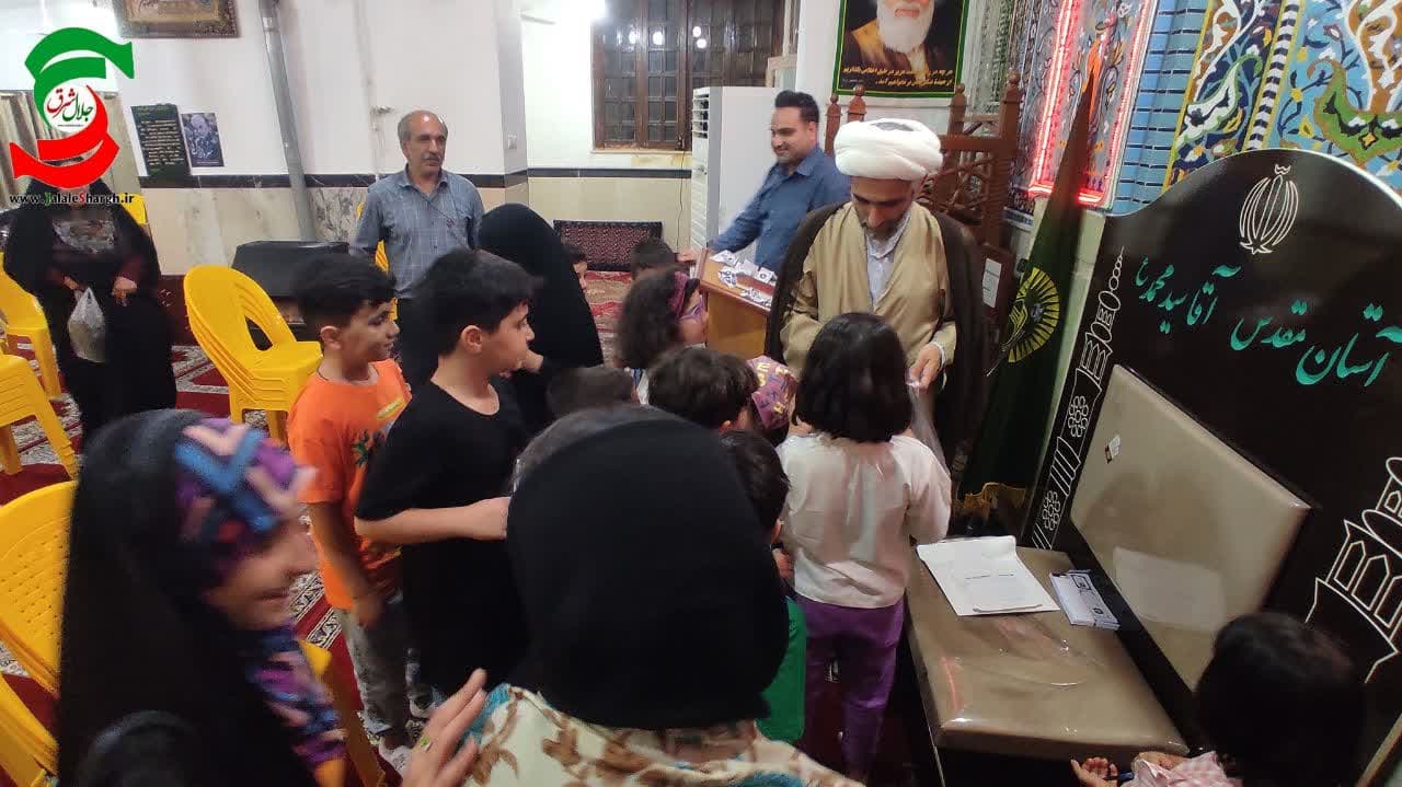 گفتنی است این مراسم با مولودی خوانی و اهدای جوایز به قید قرعه و تمامی کودکان همراه بود.