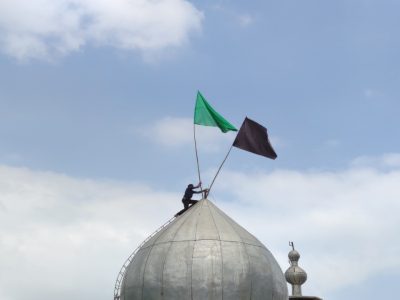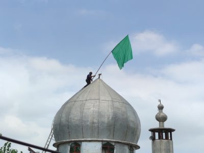 این مراسم که با نوحه خوانی مداحان ادامه می یابد و با صدای اذان و اقامه نماز ظهر و عصر ، متولیان بقعه سید احمد یمنی خود را برای برداشتن علم عزا که در صحن بقعه نصب است آماده و سه چهار نفر از پیر غلامان این روستا ، بعد از بازکردن علم عزای و طواف دور بقعه ، علم سبز را که قبلاَ آماده کرده بودند یکی از خادمین بقعه علم سیاه را از بقعه پایین کشیده و علم سبز را بر بقعه نصب می کند و بدین صورت مراسم عزاداری ماه های محرم و صفر در این روستا پایان می یابد و مردم عزادار با رفتن به منازل مسکونی اهالی روستای ماشک از غذاهایی که قبلا طبخ و آماده شده است پذیرایی می شوند.