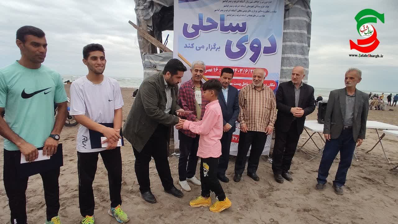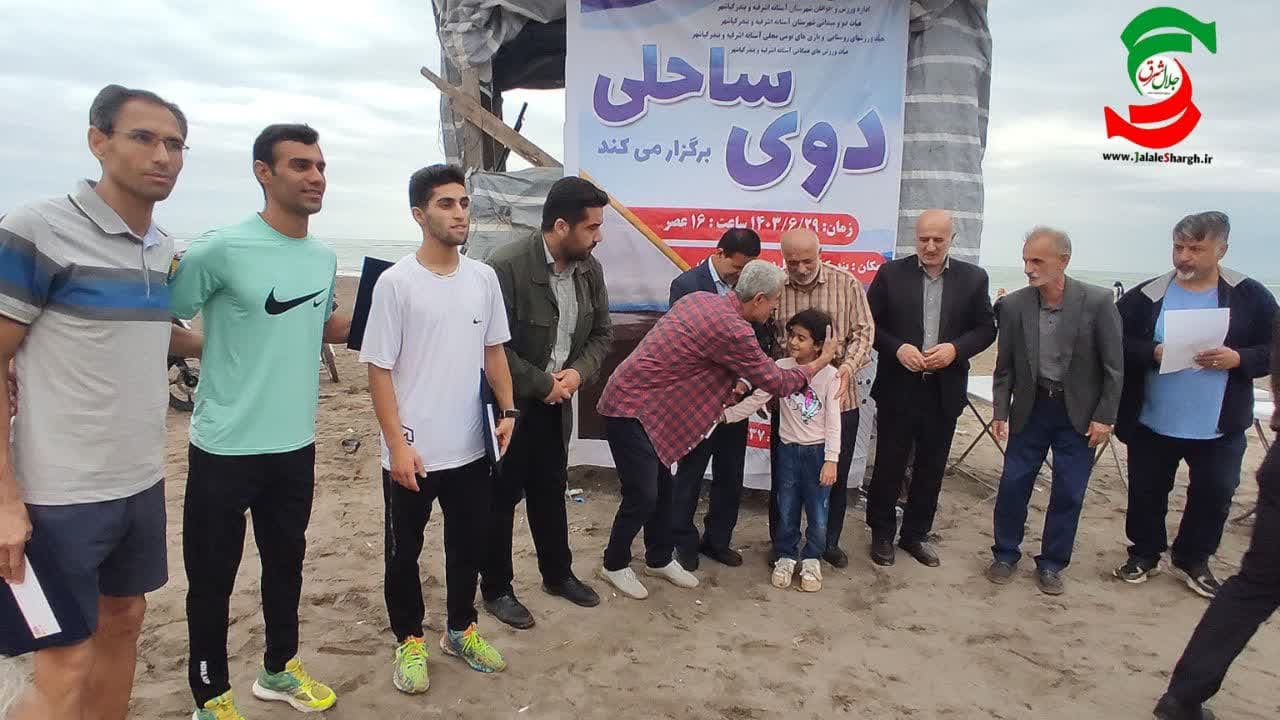 به گزارش خبرنگار جلال شرق، در مسابقه دو ساحلی که با حضور ۴۰ شرکت کننده برگزارشد،۵ نفر اول و ۳ کودک و نوجوان بابت حضور و همراهی تا پایان مسابقه مورد تقدیر قرارگرفتند.