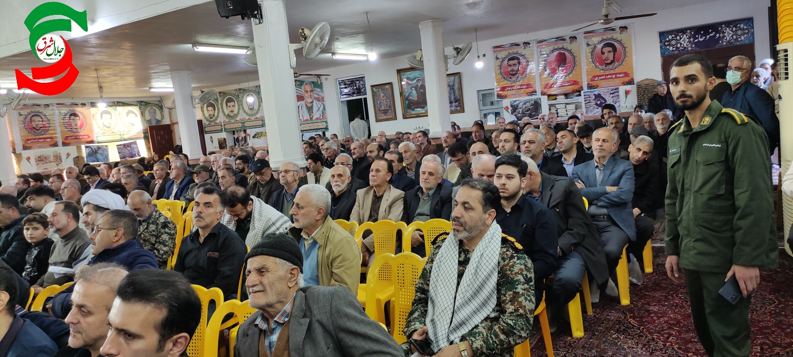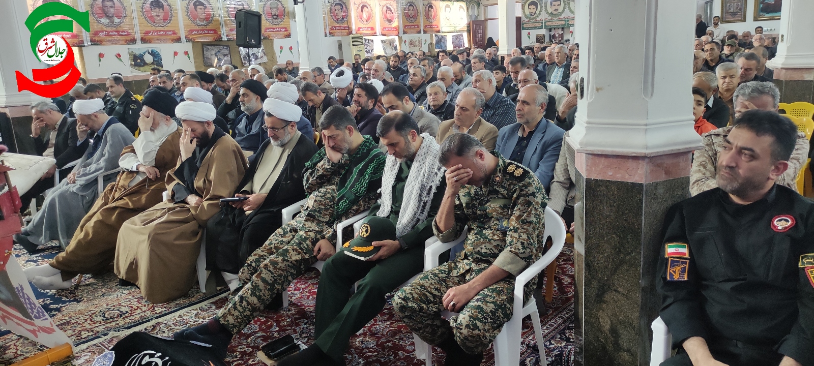 به گزارش جلال شرق ، در این مراسم معنوی که امام جمعه مسئولین شهرستان و استانی، جمع کثیری از فرماندهان دوران دفاع مقدس ، خانواده معزز شهدا، ایثارگران، جانبازان و اقشار مختلف مردم حضور داشتند حجت الاسلام مهدی احدی یکی از شاگردان آیت الله حسن زاده آملی در باره ایام فاطمیه و شهادت بانوی دو عالم حضرت فاطمه زهرا (س) و ویژگی های خبرنگار شهید سید محمد اسحاقی از زبان مادرش مطالبی را بیان کرد .