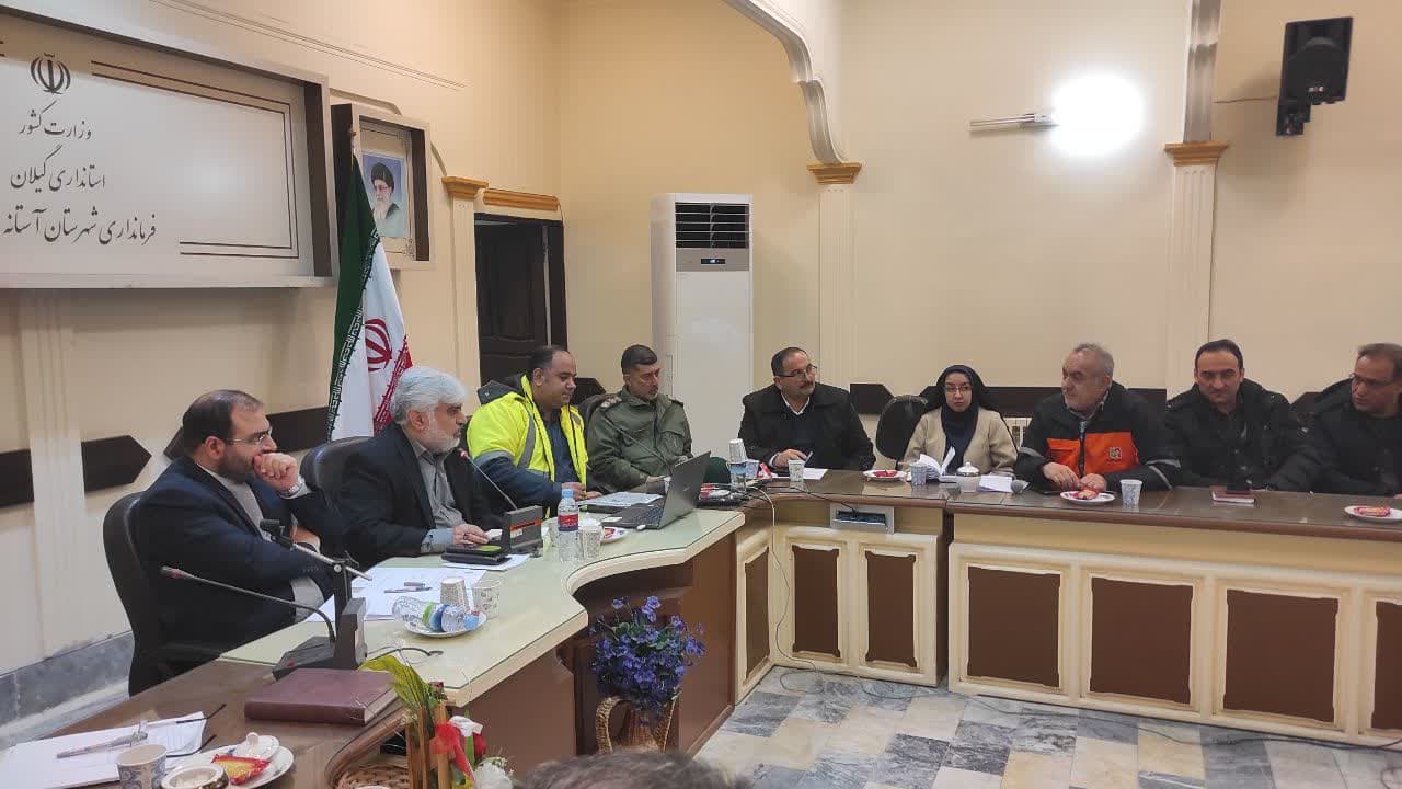 ستاد مدیریت بحران شهرستان آستانه اشرفیه صبح امروز با حضور فرماندار و اعضای ستاد برای آمادگی و تأمین تجهیزات در سالن جلسات فرمانداری تشکیل جلسه داد.