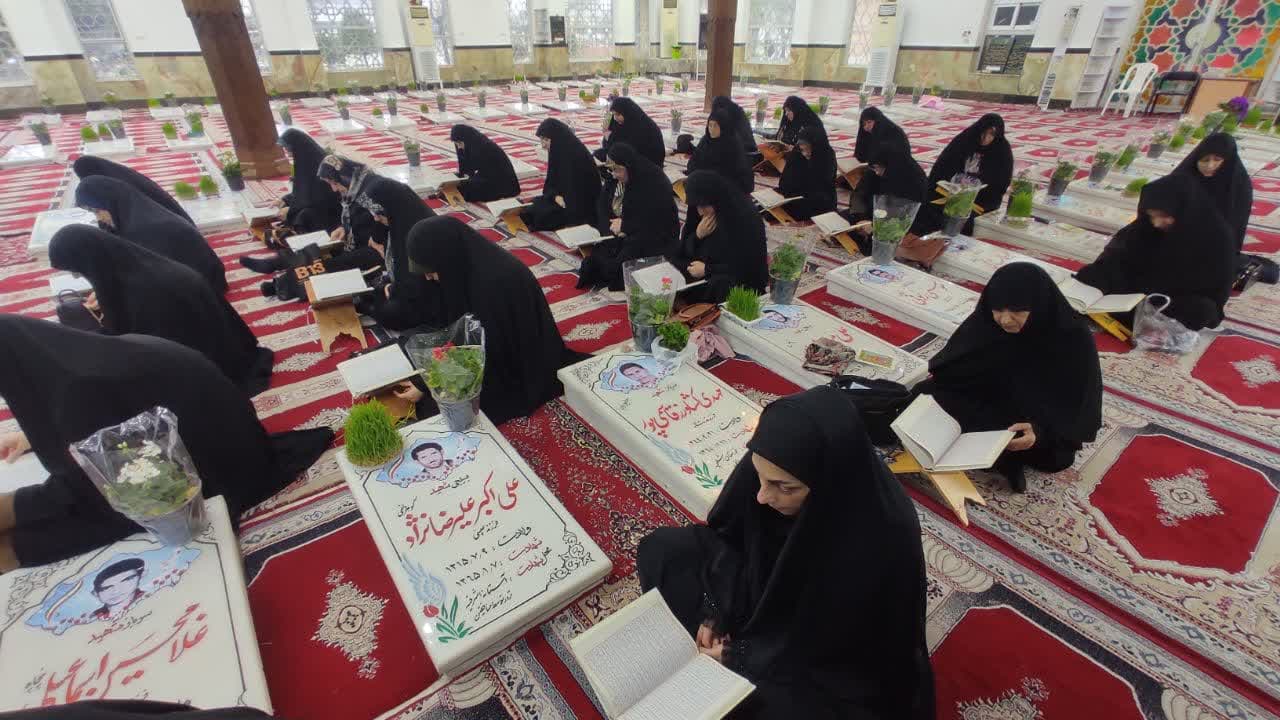 به همت پیروان عترت واحد خواهران هیئت رزمندگان اسلام ؛محفل انس با قرآن کریم در جوار شهدای ۸ سال دفاع مقدس ، مدافعان حرم و امنیت این شهرستان برگزارشد.