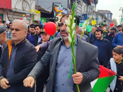 راه پیمایی روز جهانی قدس در آخرین جمعه از ماه مبارک رمضان به مانند سال های گذشته با حضور اقشار مختلف مردم شهر آستانه اشرفیه برگزارشد.