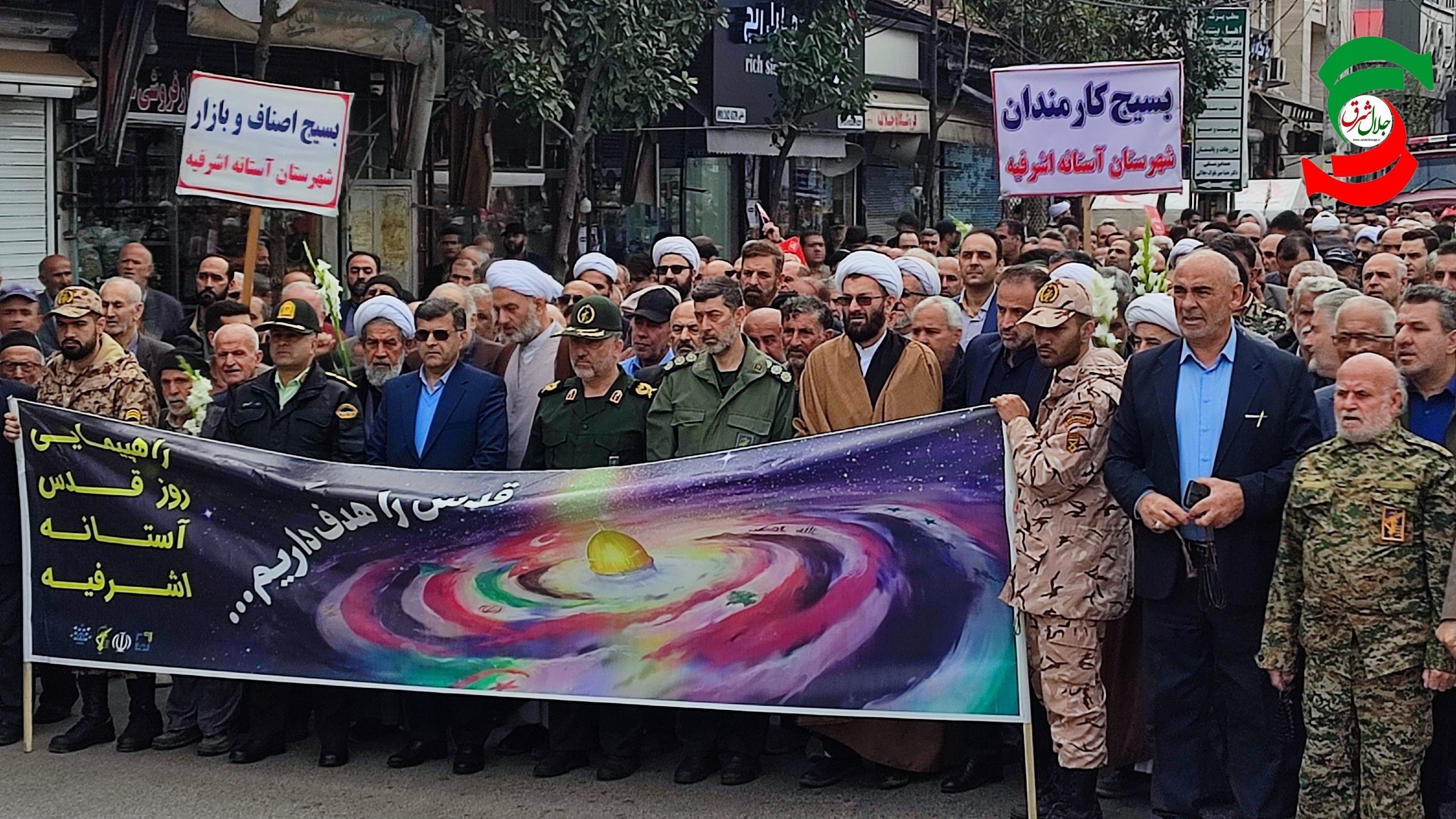 به گزارش جلال شرق، این مراسم که از جلوی مقر کانون فرهنگی بسیج مقاومت شهر آستانه اشرفیه تا جلوی حرم مطهر سلطان سید جلاالدین اشرف ادامه داشت با شعار های مرگ بر اسرائیل و مرگ بر امریکا بار دیگر حمایت خود را از مردم فلسطین اعلام وجنایات اسرائیل را در سرزمین های اشغالی قدس شریف محکوم کردند.