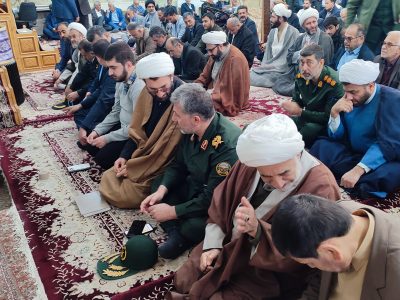 راه پیمایان پس از آتش زدن پرچم اسرائیل و امریکا در میدان اصلی این شهر با حضور در مسجد جامع برای نماز جمعه به سخنان سردار عباس بایرامی رئیس سازمان تاریخ و ادبیات حفظ آثار و نشر ارزش های دفاع مقدس کشور گوش فرا دادند و قبل از خطبه های نماز جمعه قطعنامه راه پیمایی قرائت شد.
