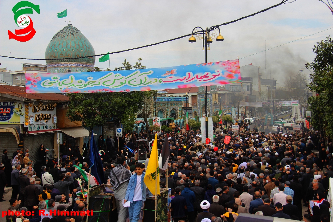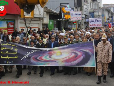 راه پیمایی روز جهانی قدس در آخرین جمعه از ماه مبارک رمضان به مانند سال های گذشته با حضور اقشار مختلف مردم شهر آستانه اشرفیه برگزارشد.