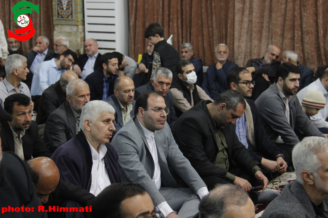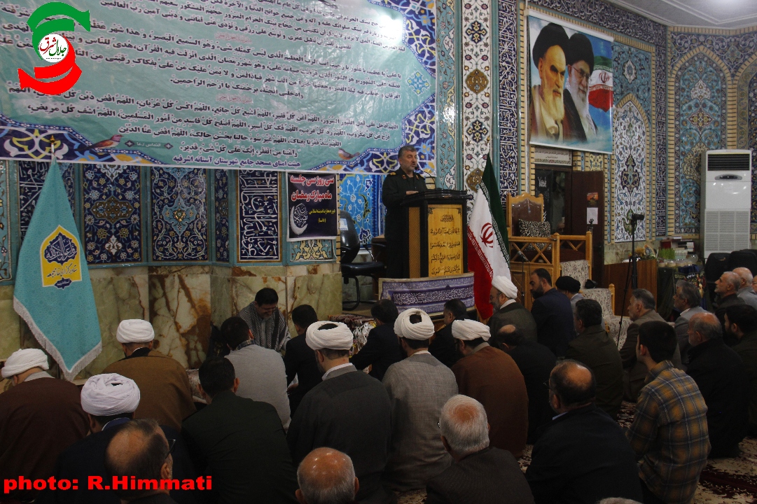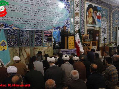راه پیمایان پس از آتش زدن پرچم اسرائیل و امریکا در میدان اصلی این شهر با حضور در مسجد جامع برای نماز جمعه به سخنان سردار عباس بایرامی رئیس سازمان تاریخ و ادبیات حفظ آثار و نشر ارزش های دفاع مقدس کشور گوش فرا دادند و قبل از خطبه های نماز جمعه قطعنامه راه پیمایی قرائت شد.